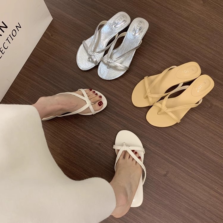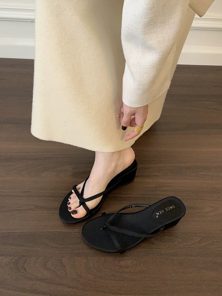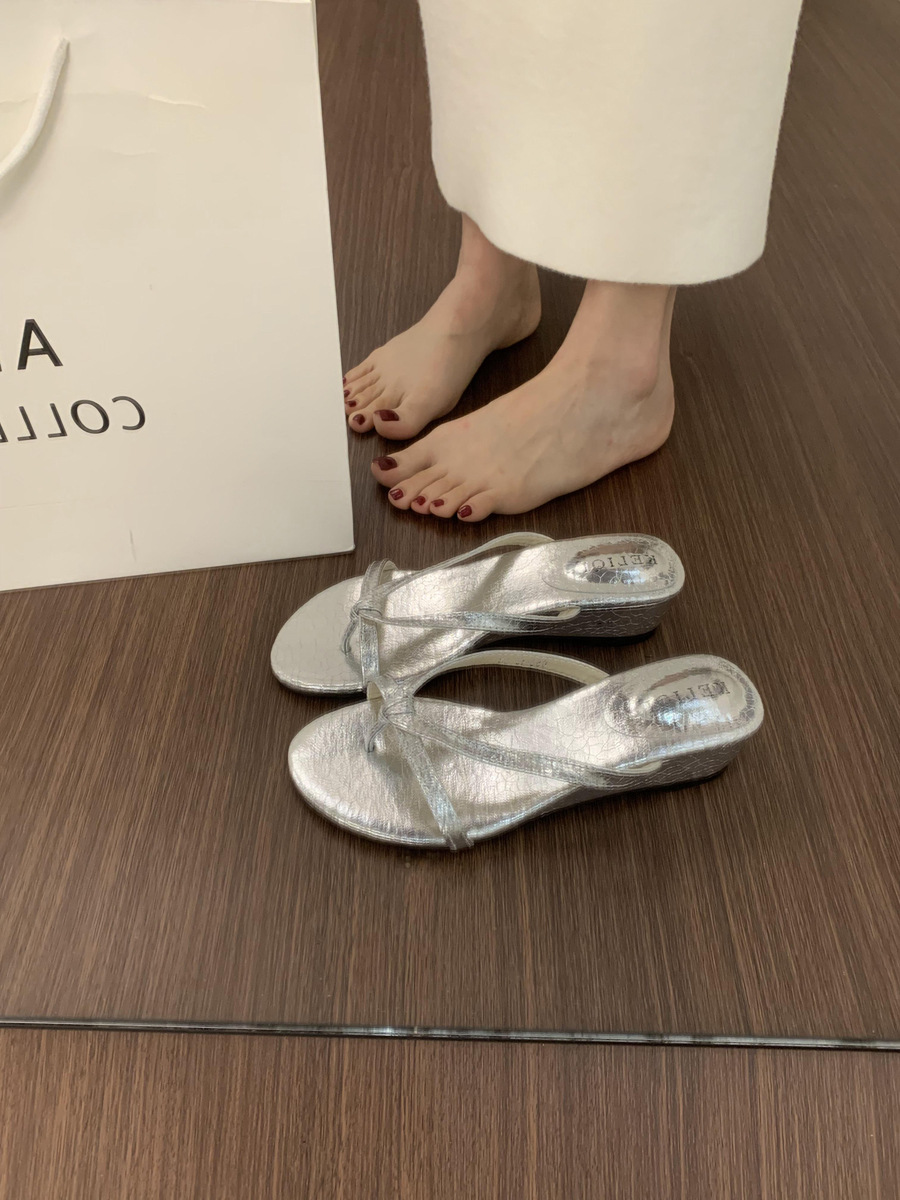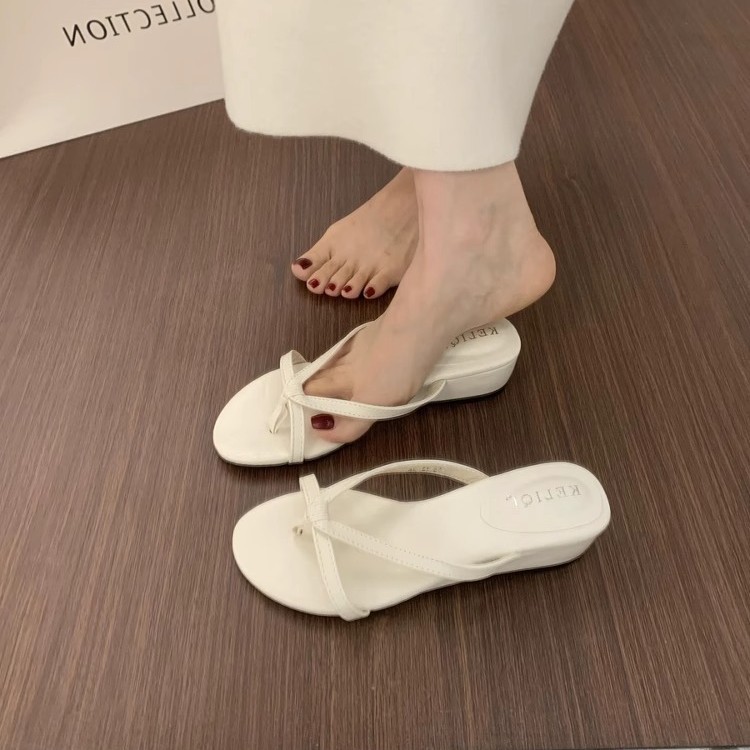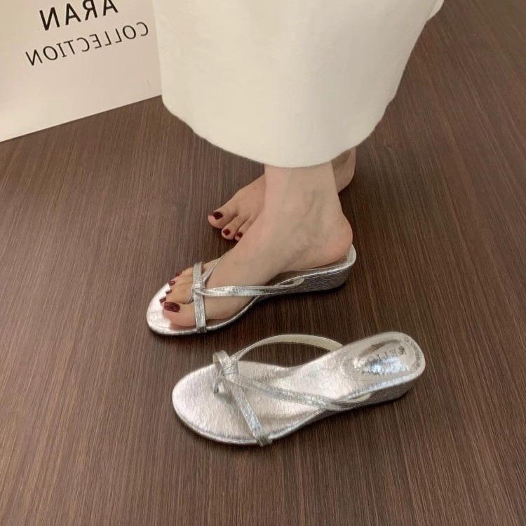 坡跟复古夹趾拖鞋女2025年新款夏季外穿海边沙滩法式小凉拖高跟鞋