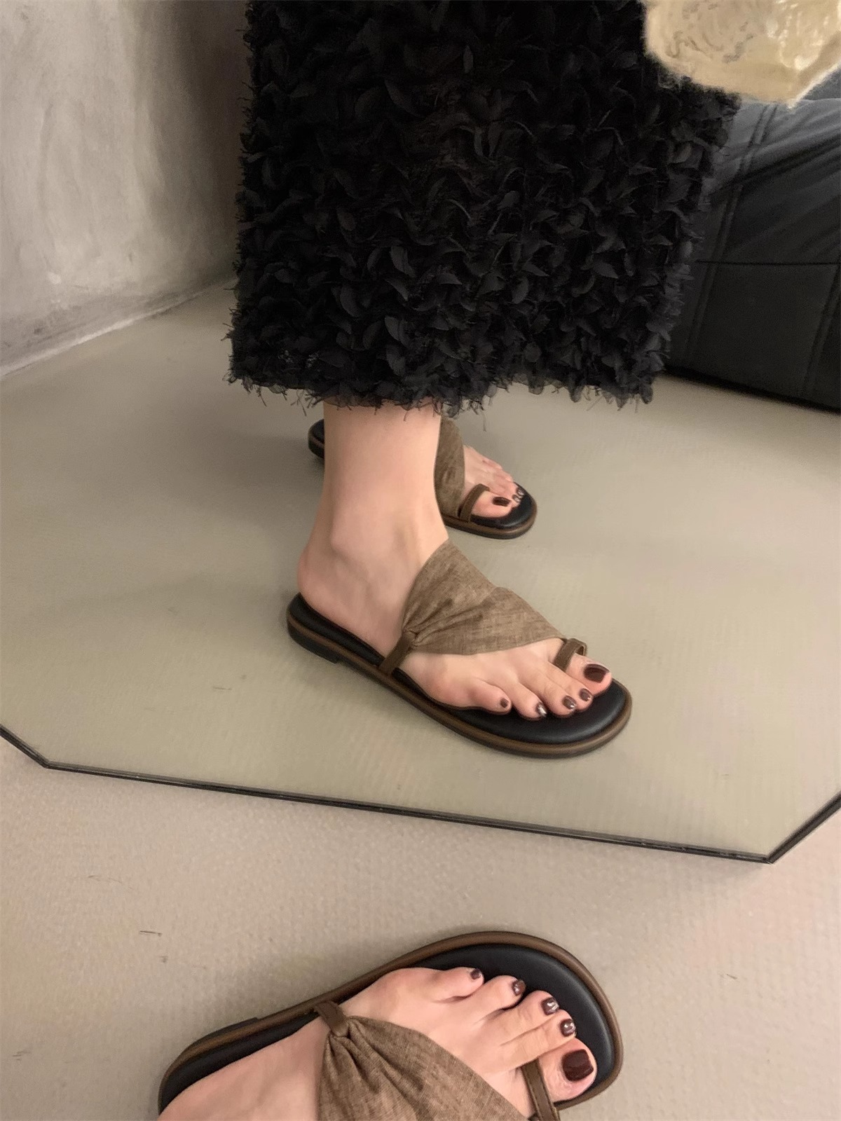 套趾凉鞋女夏季小众设计感豹纹外穿半拖鞋韩版软底沙滩复古罗马鞋