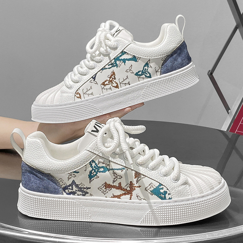 新款男士低帮滑板鞋青少年学生港风小白鞋直播运动休闲潮男鞋