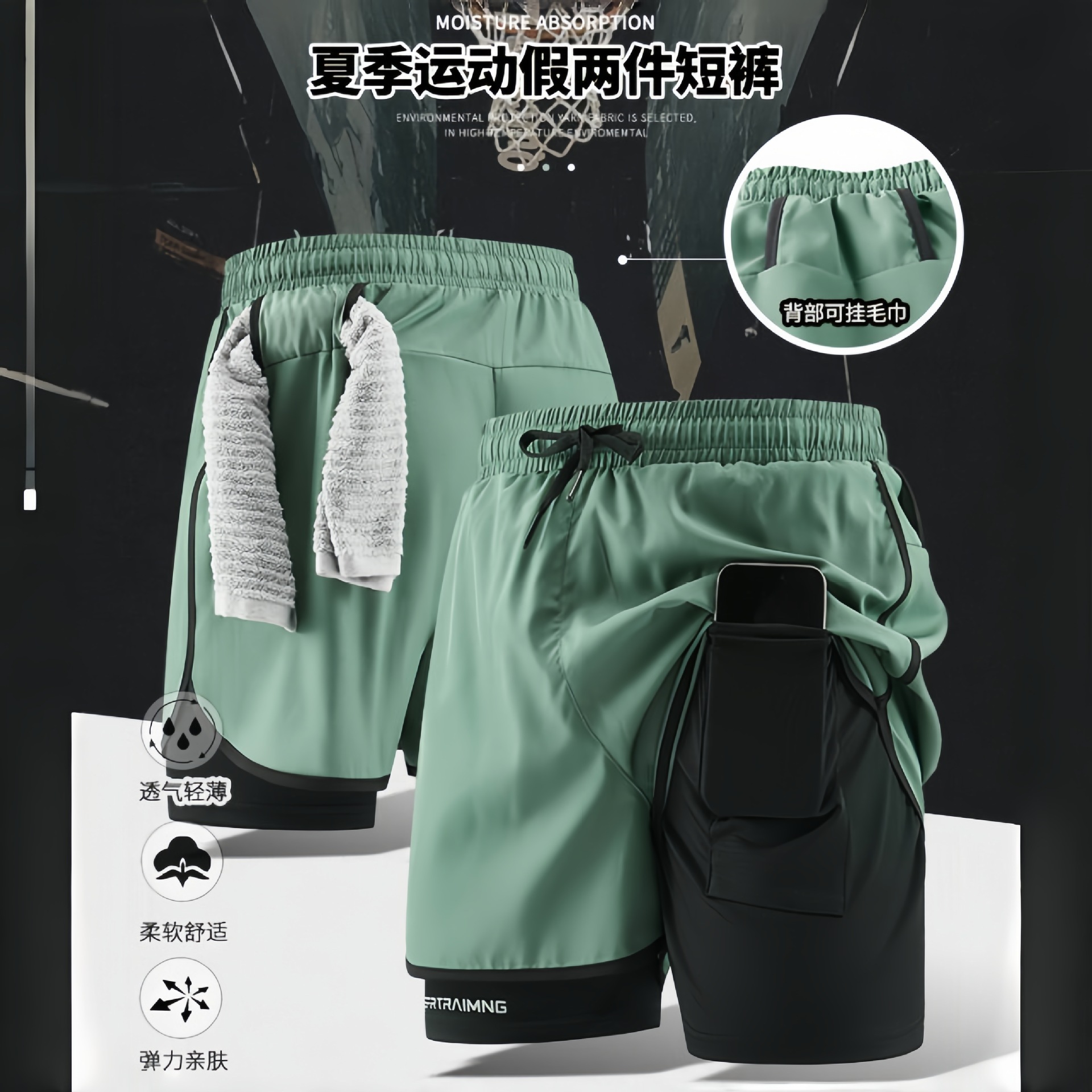 跨境运动短裤跑步专用宽松防走光三分裤双层速干工装休闲裤子印花