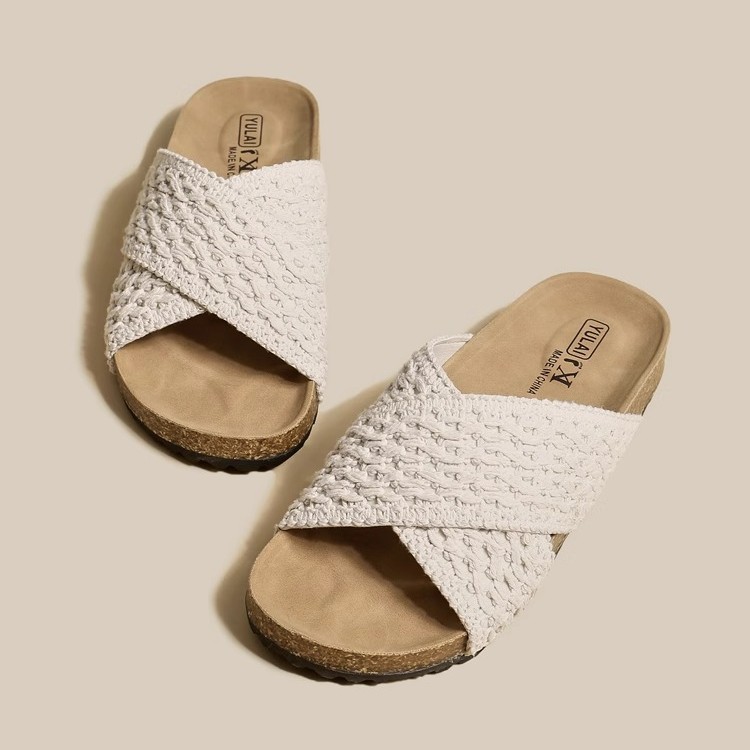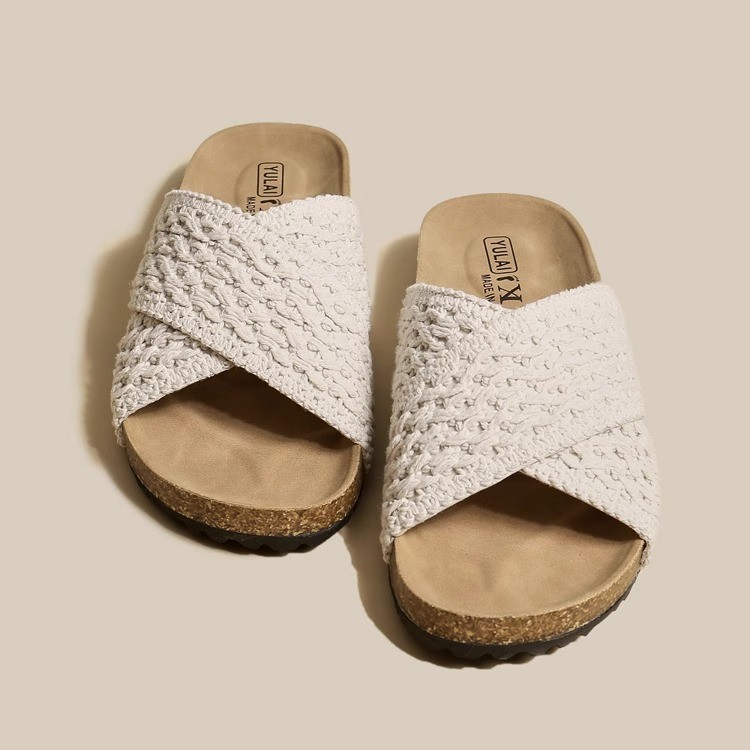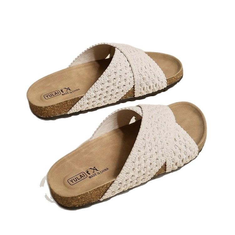 复古交叉勃肯拖鞋女2025年夏季新款针织外穿休闲外穿配裙子凉拖鞋