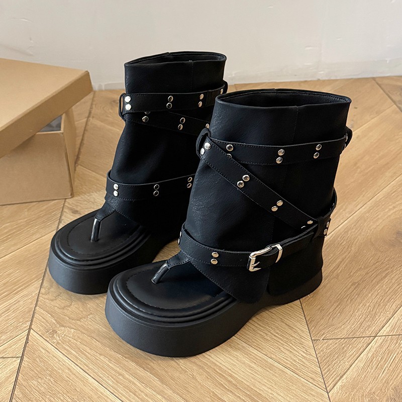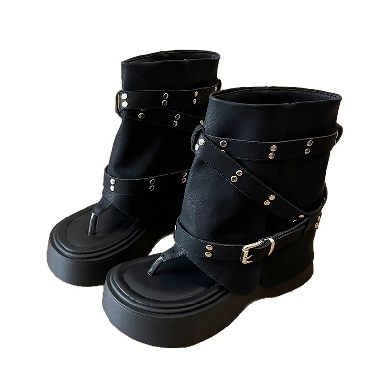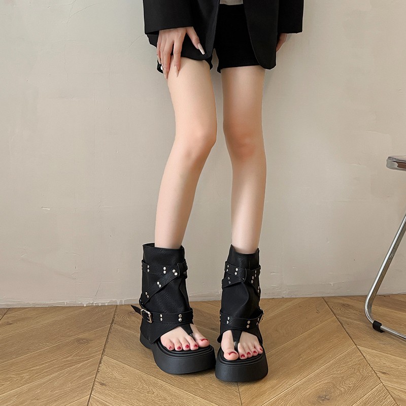 7cm厚底裤管凉靴女2025夏季新款小个子增高松糕休闲夹趾罗马凉鞋