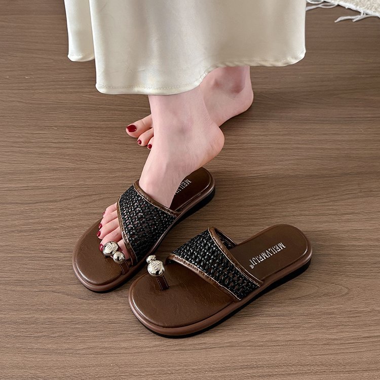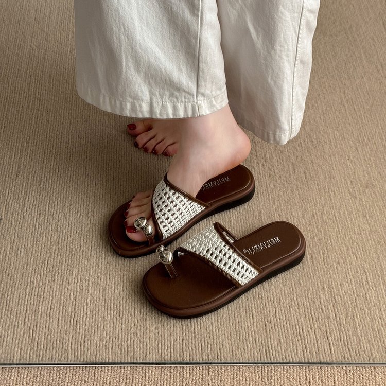 法式绝美平底套趾凉拖鞋女夏外穿2025新款配裙子海边度假沙滩凉鞋