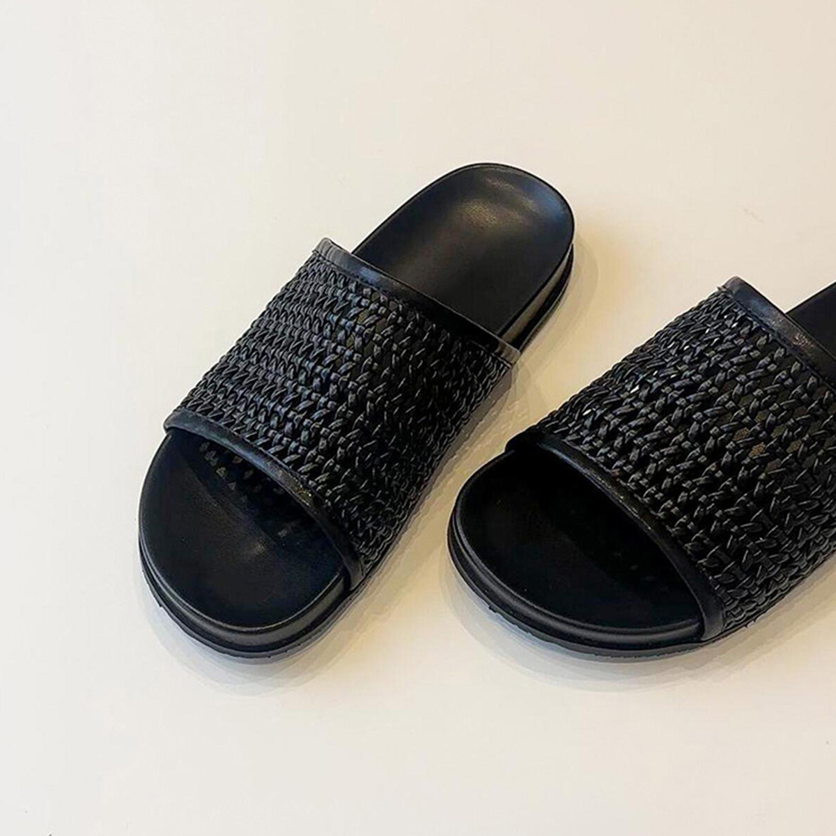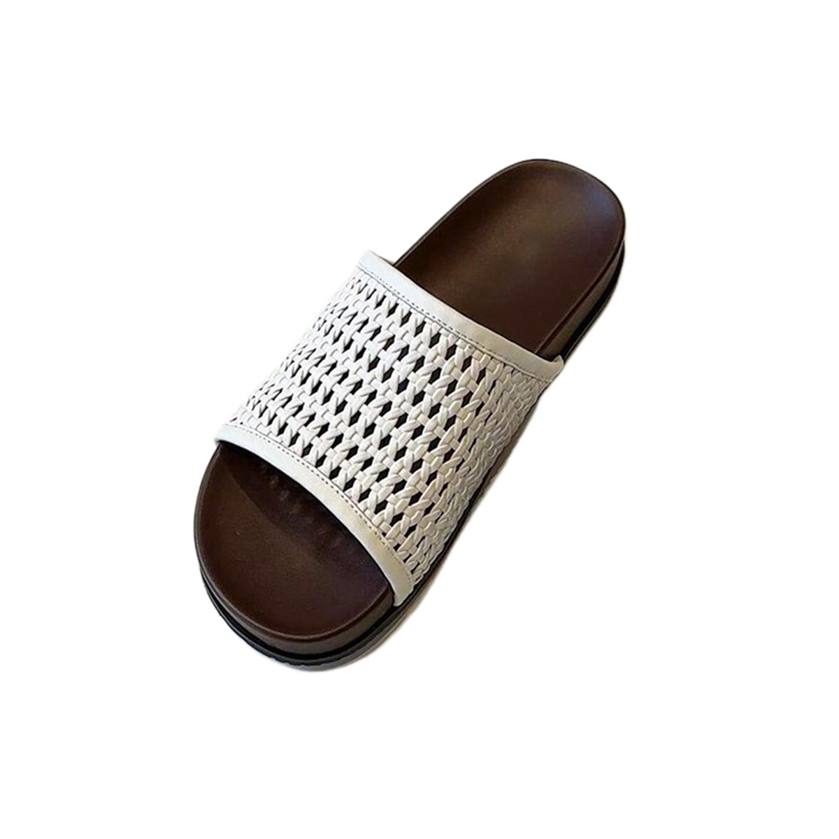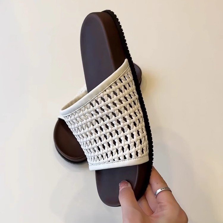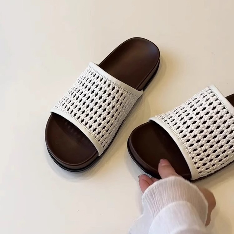自留版~编织渔网鞋女法式复古透气外穿厚底沙滩鞋平底一字凉拖夏