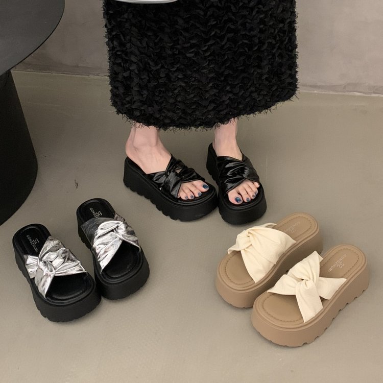松糕厚底凉拖鞋女夏外穿2025新款配裙子高级感海边沙滩一字拖凉鞋