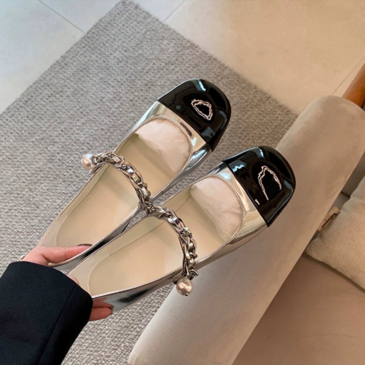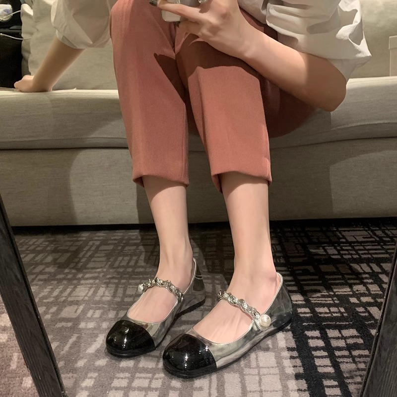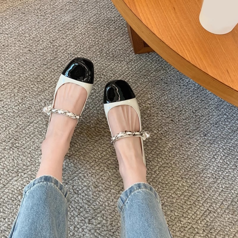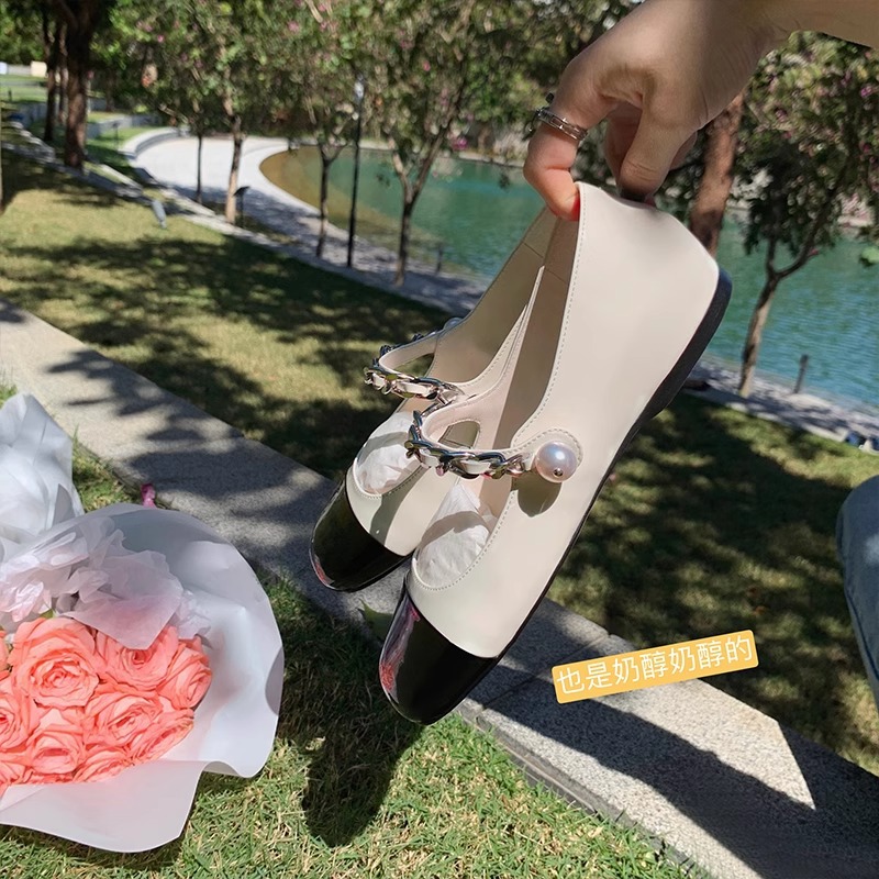 法式复古粗跟一字扣玛丽珍鞋女2025春夏新款小香风珍珠平底单鞋女