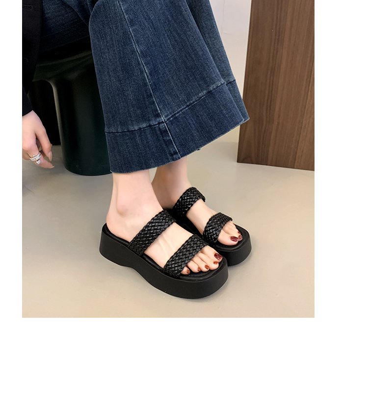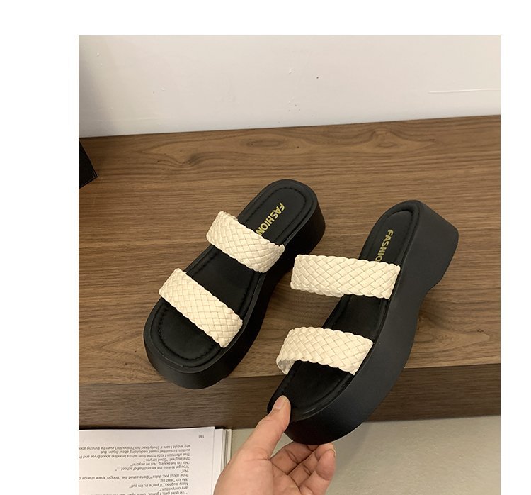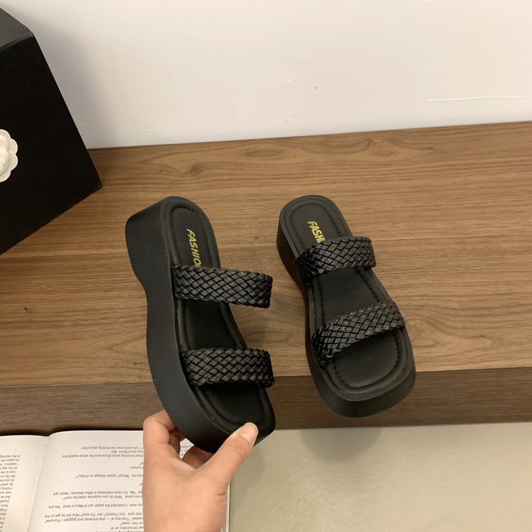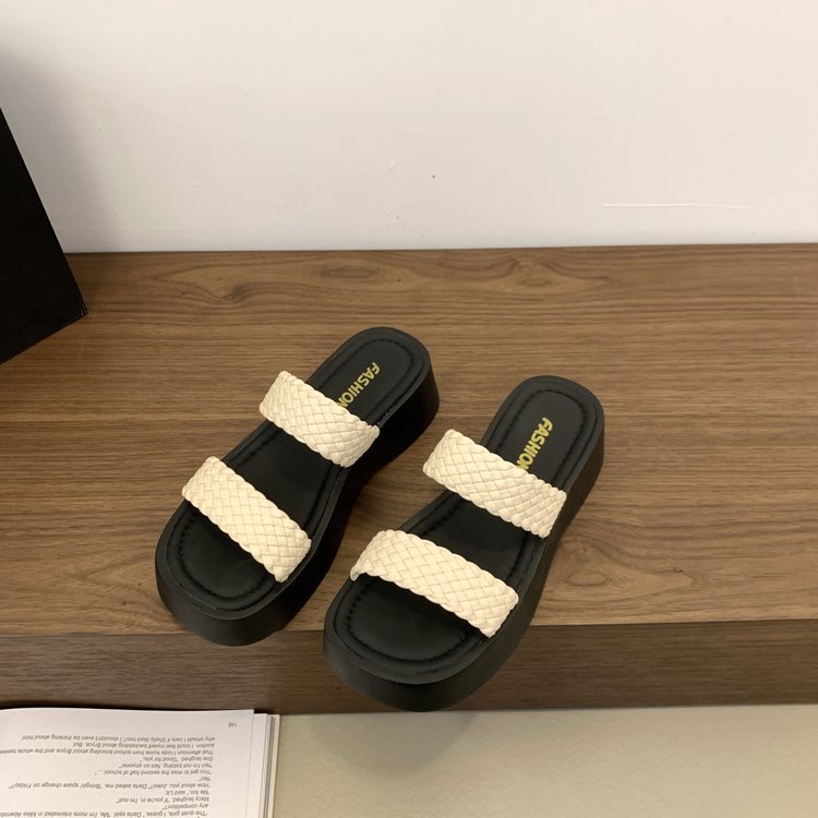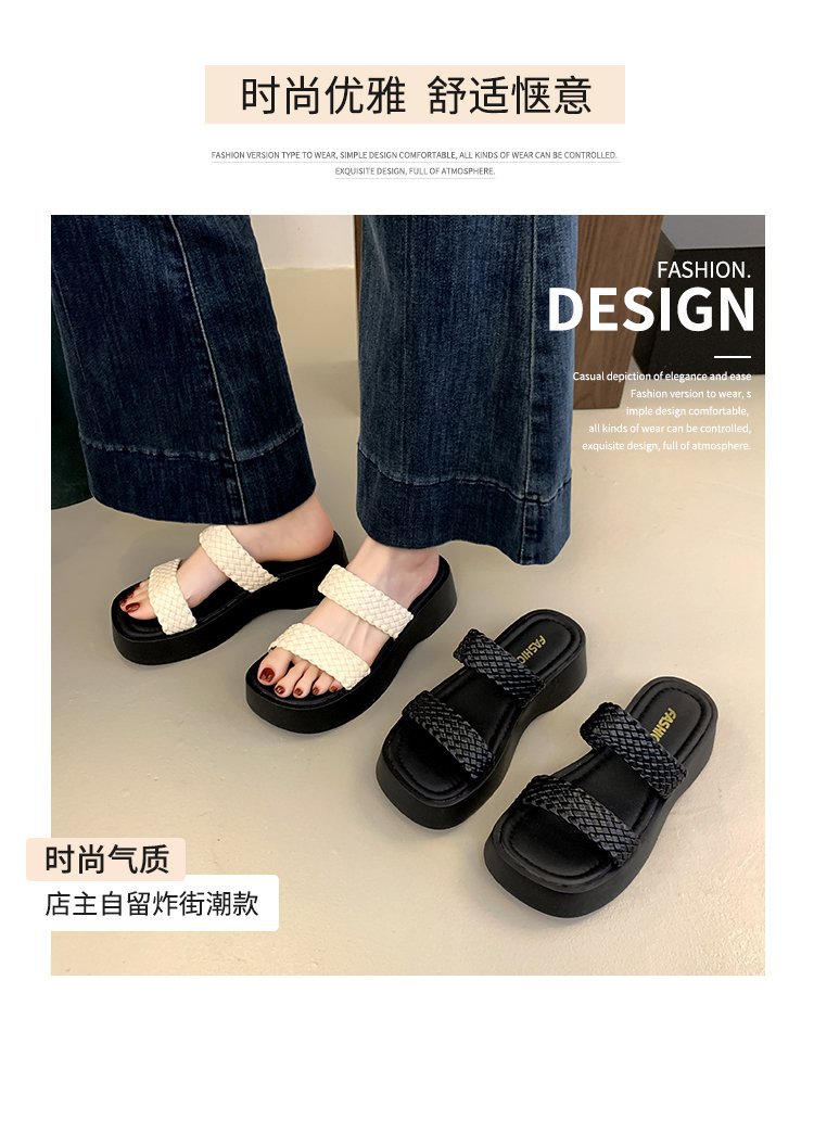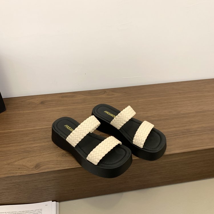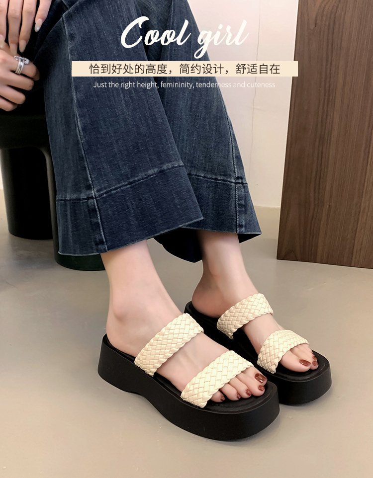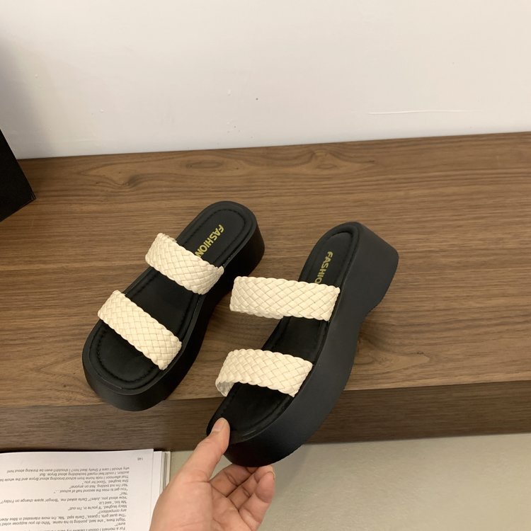 厚底增高凉拖鞋女夏外穿2025新款小个子增高百搭一字沙滩休闲凉鞋