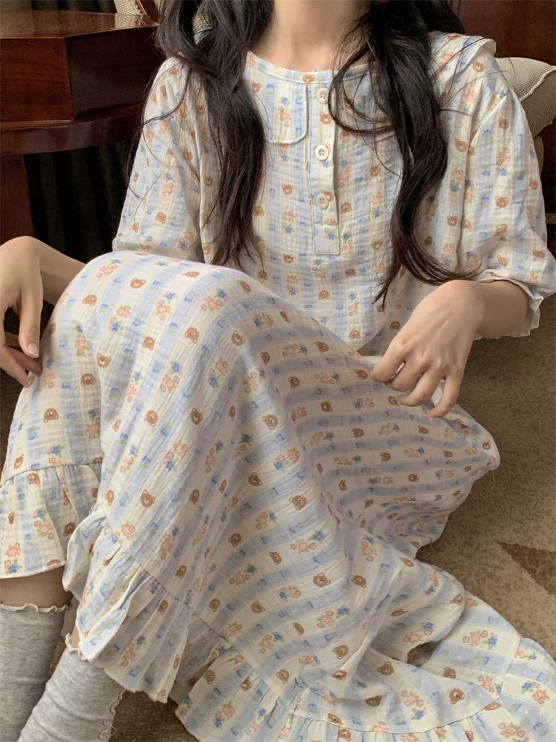 睡衣女夏季薄款娃娃领睡裙卡通韩版学生网红ins短袖中长款家居服
