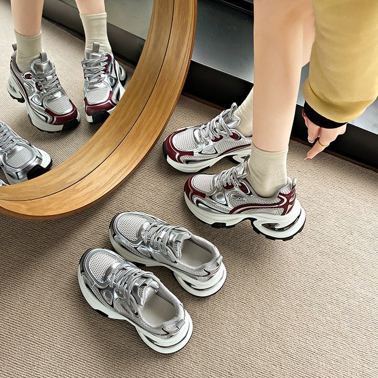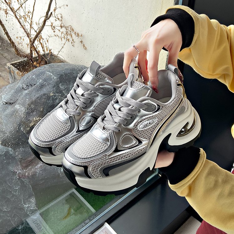 厚底显脚小老爹鞋女款2025春季新款小个子百搭增高休闲运动鞋