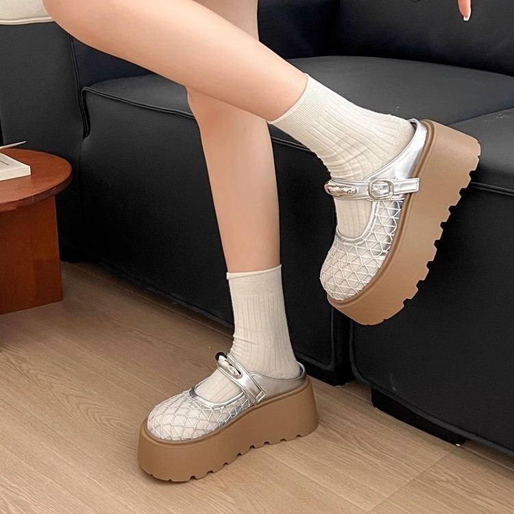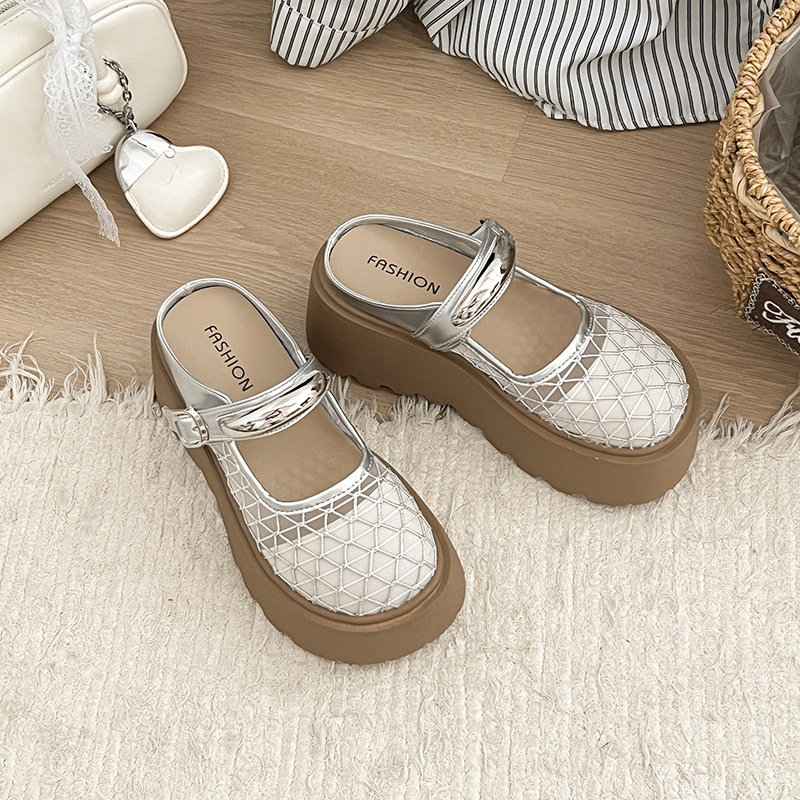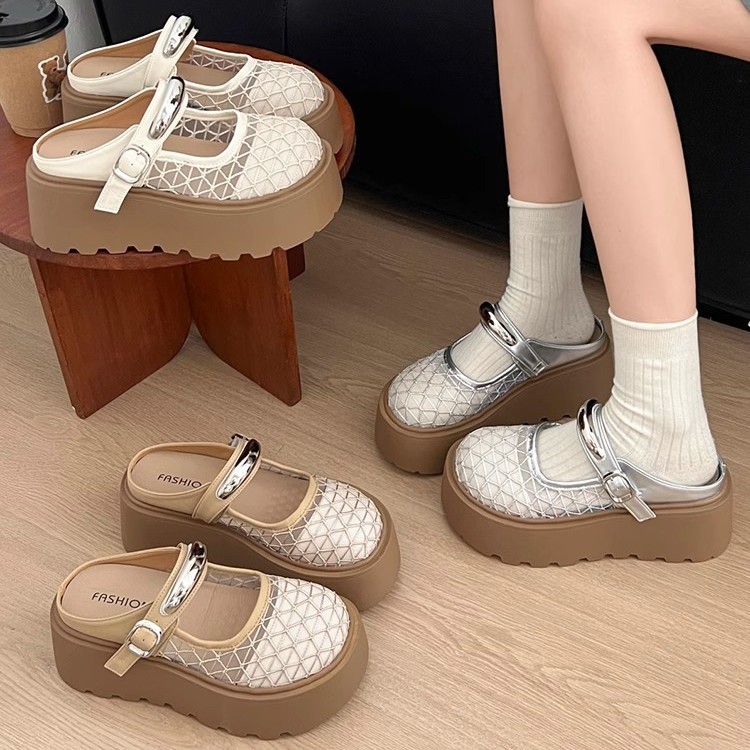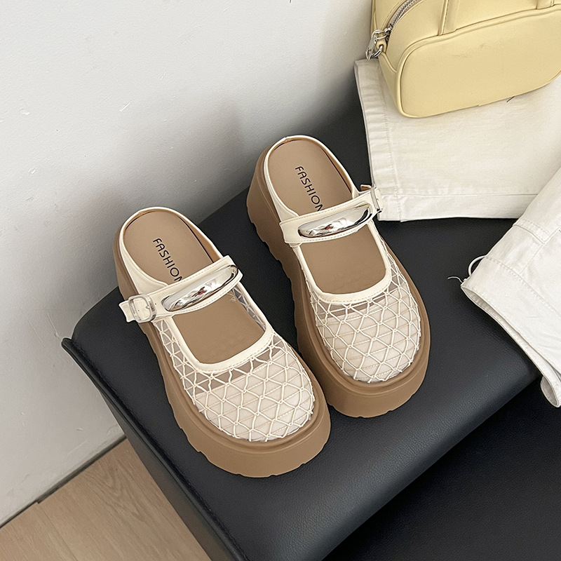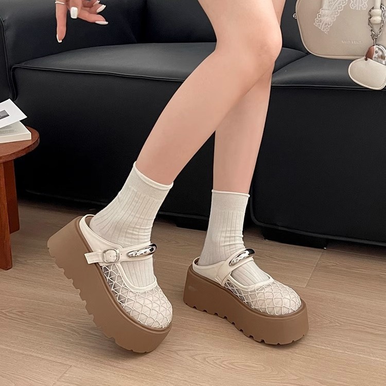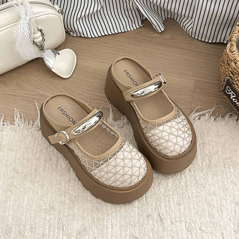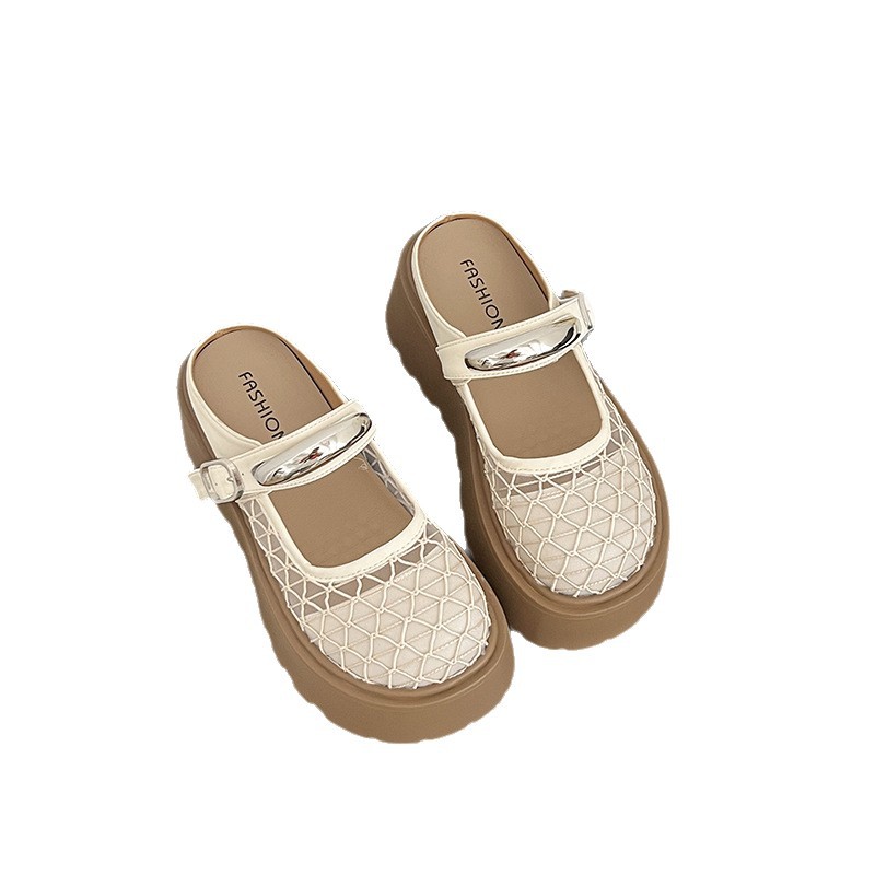 法式增高厚底网面镂空透气勃肯包头半拖鞋女外穿2025新款夏季凉拖