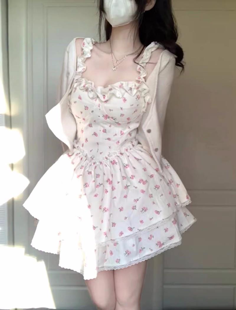 法式奶乖碎花吊带连衣裙女早春夏高级感短裙别致收腰奶甜裙子温柔