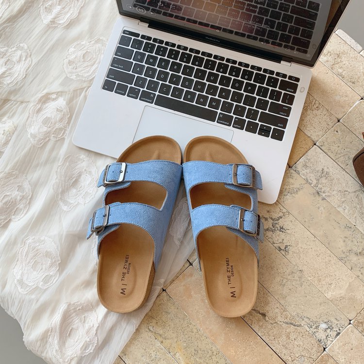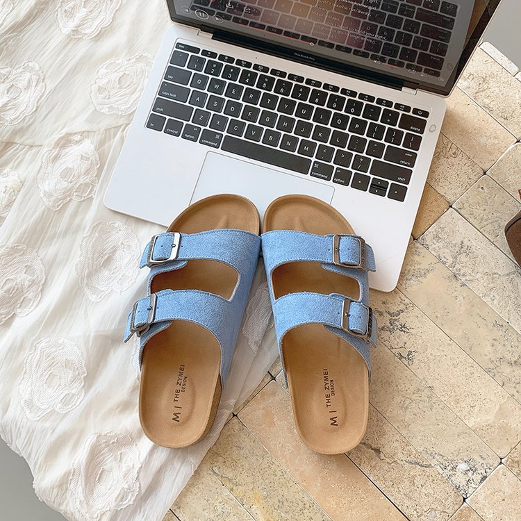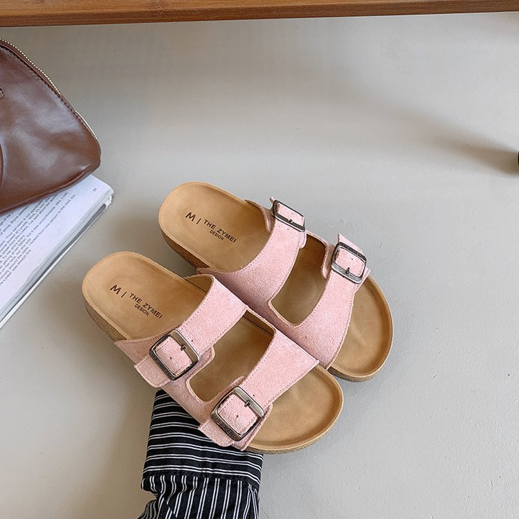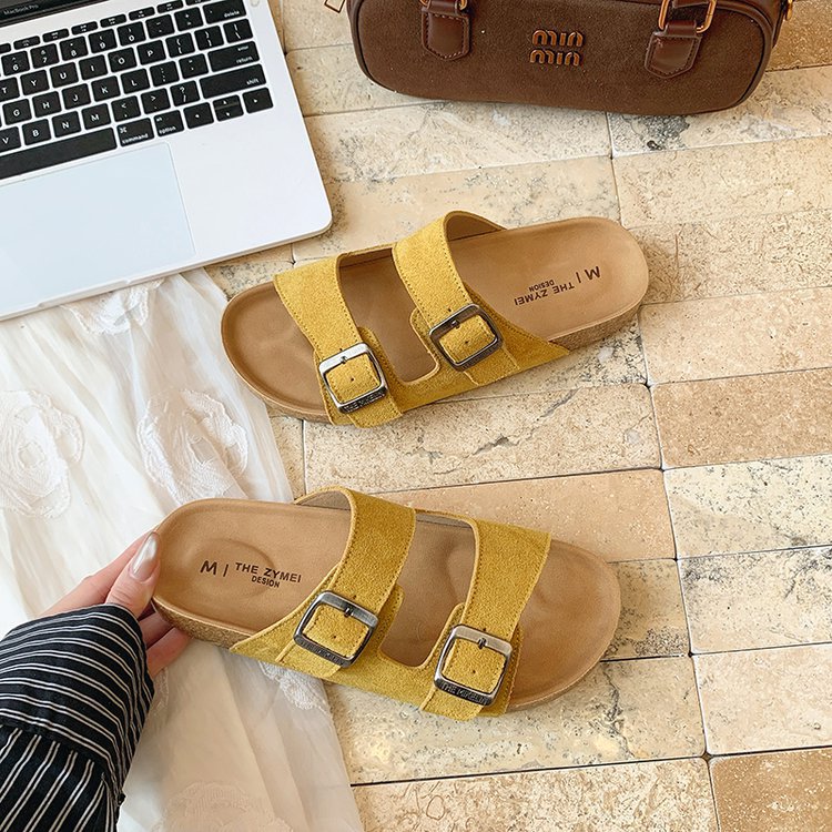 复古博肯搭扣厚底松糕拖鞋女夏季外穿2025新款一字拖休闲沙滩凉鞋