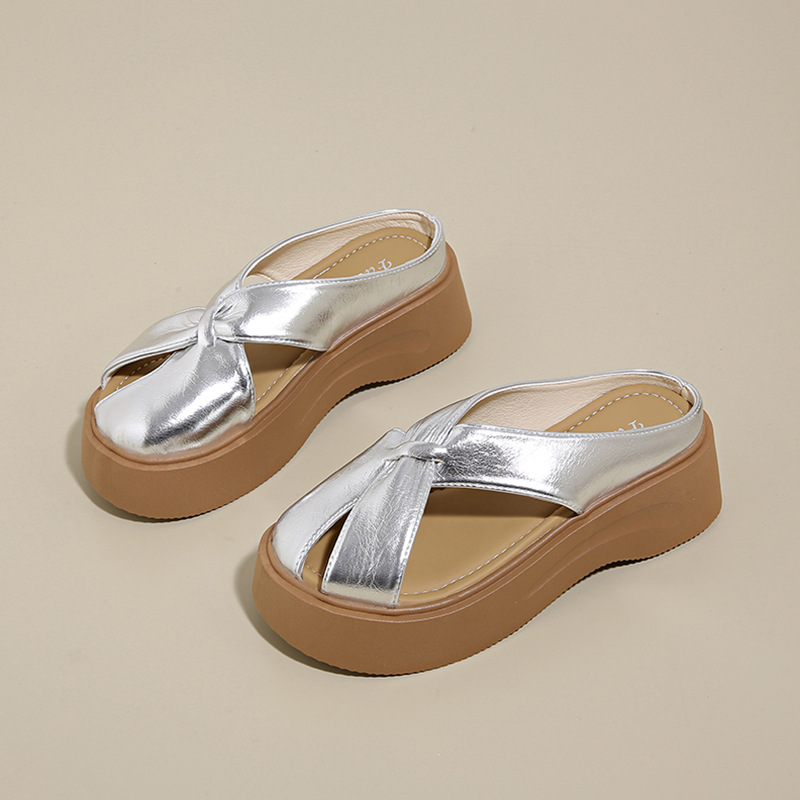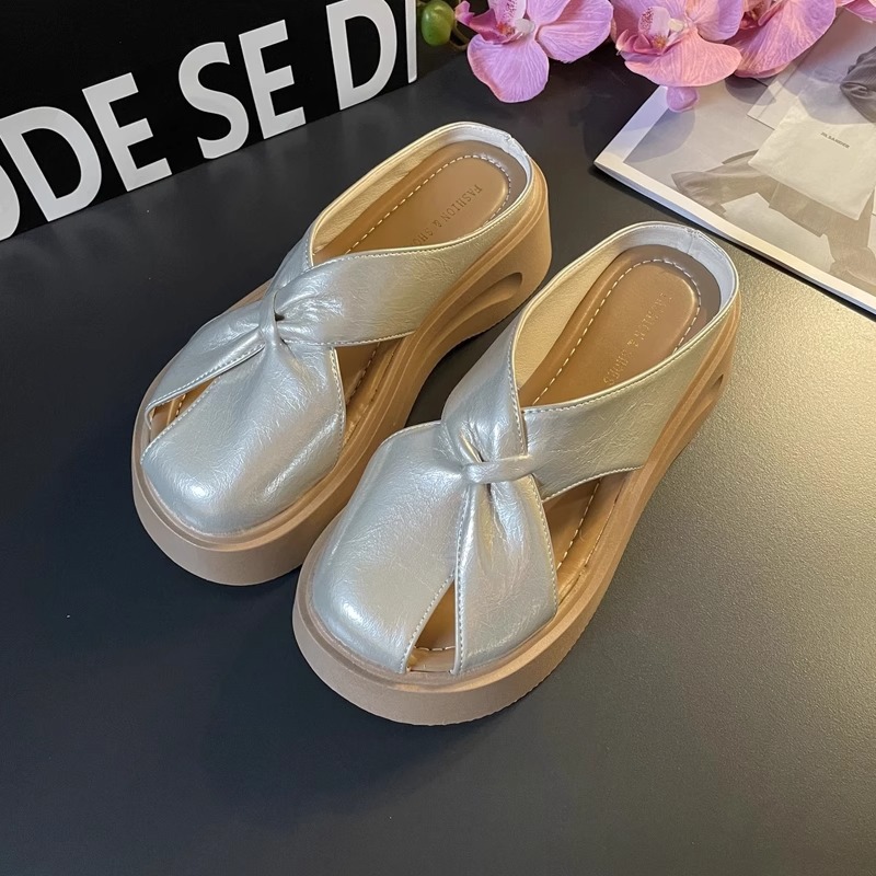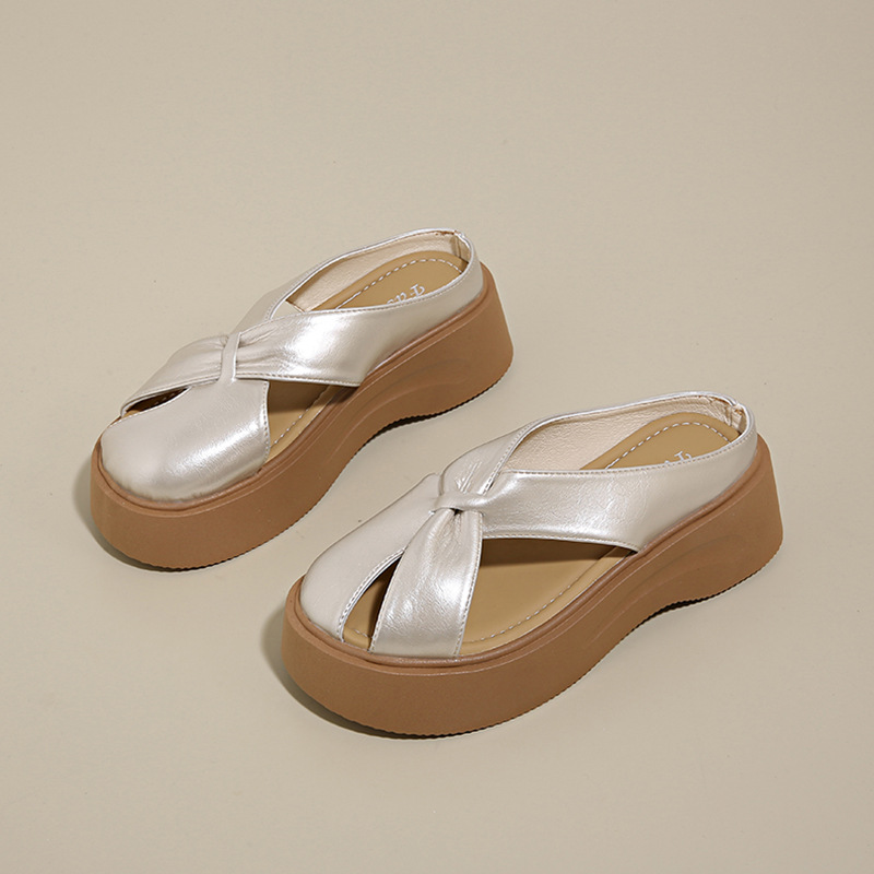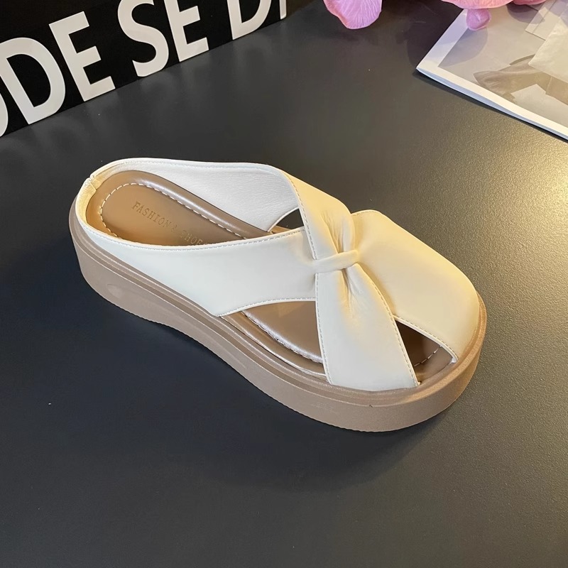 软皮版~包头凉拖鞋女2025年夏季新款外穿镂空穆勒鞋坡跟半拖鞋女