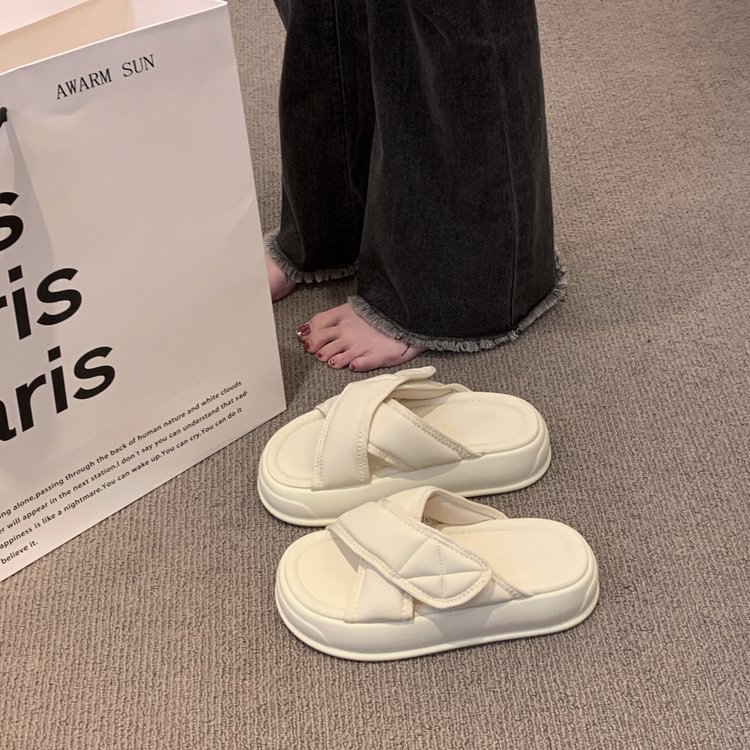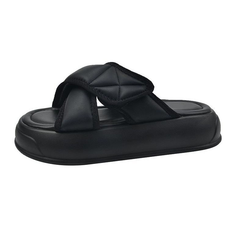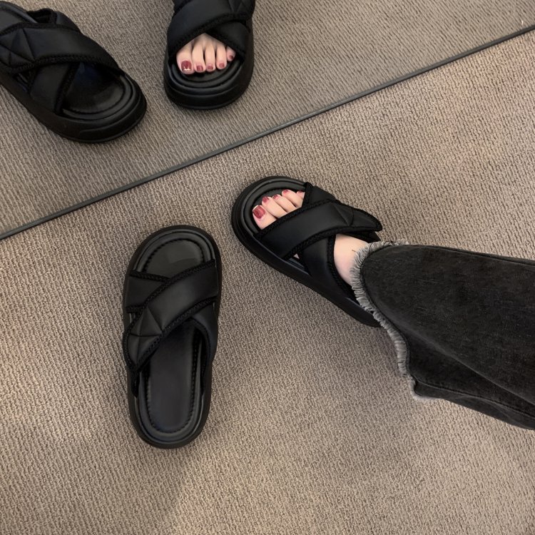 厚底凉拖鞋女夏季外穿2025新款休闲沙滩凉鞋黑色平底高级感一字拖