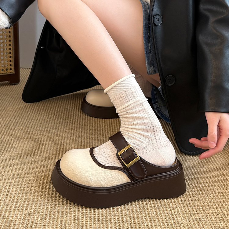 厚底博肯鞋包头拖鞋女外穿2025春夏新款无后跟女鞋法式半拖凉鞋