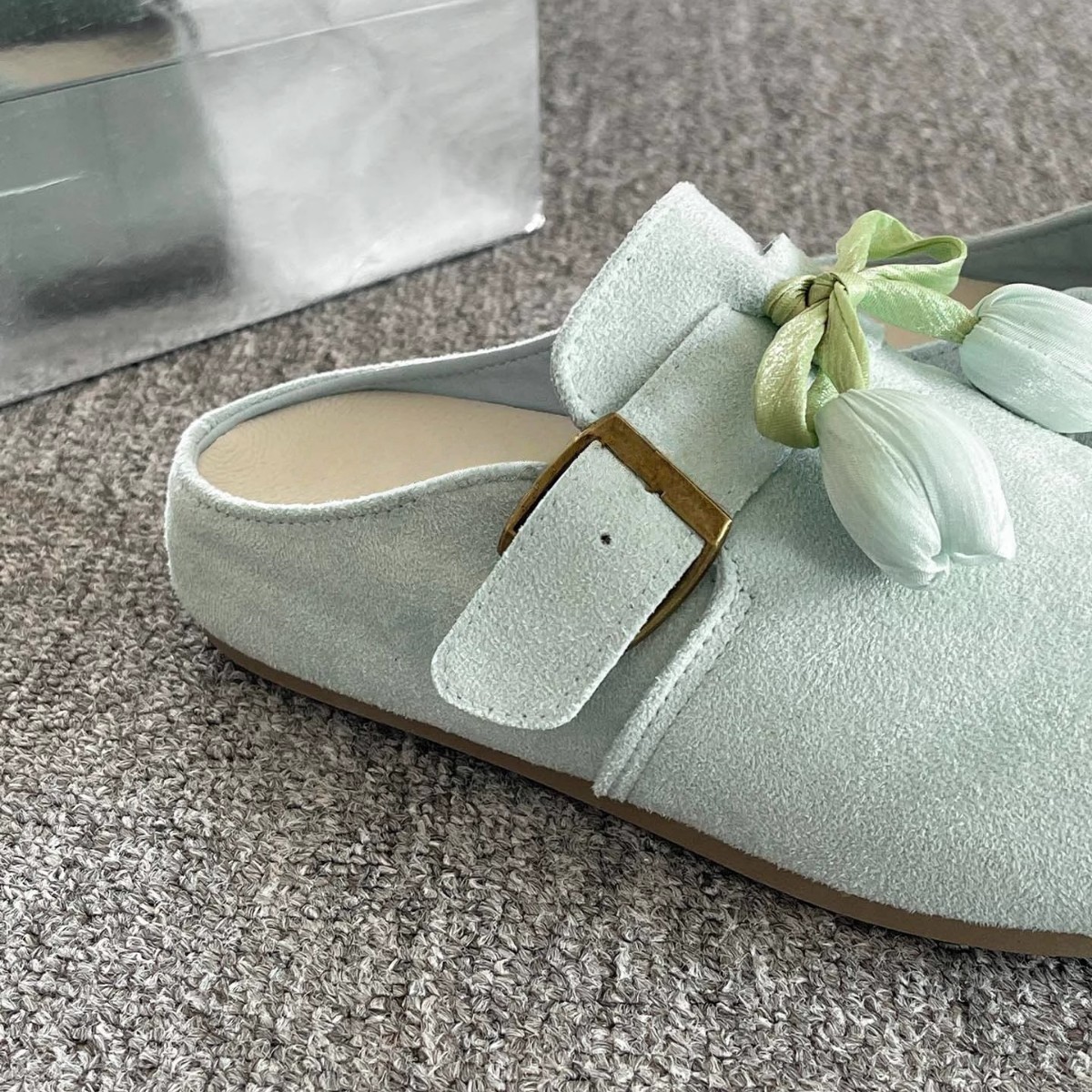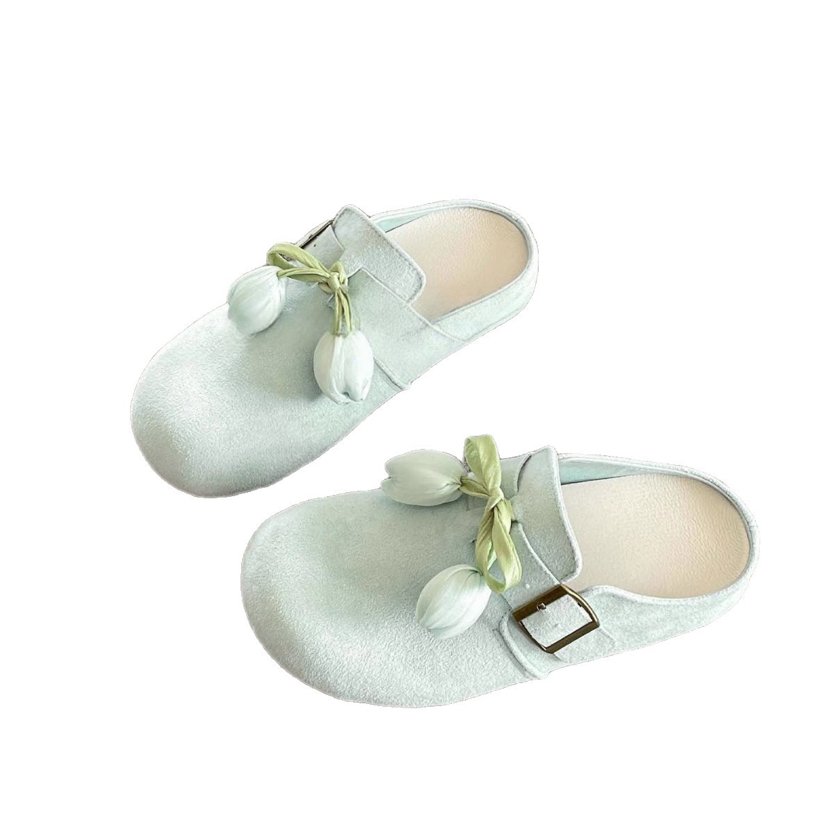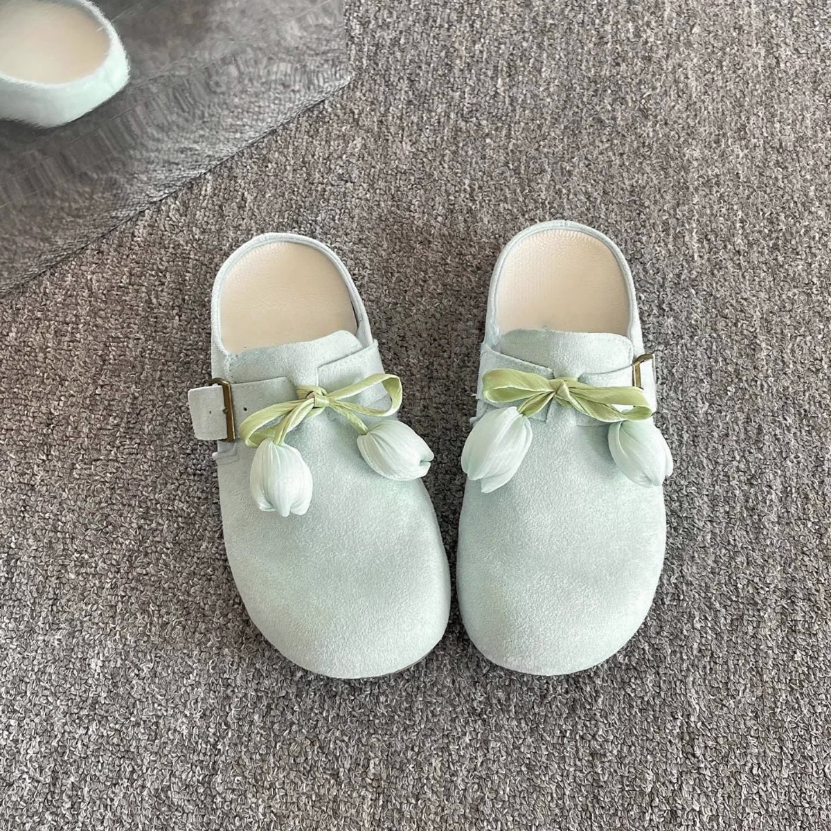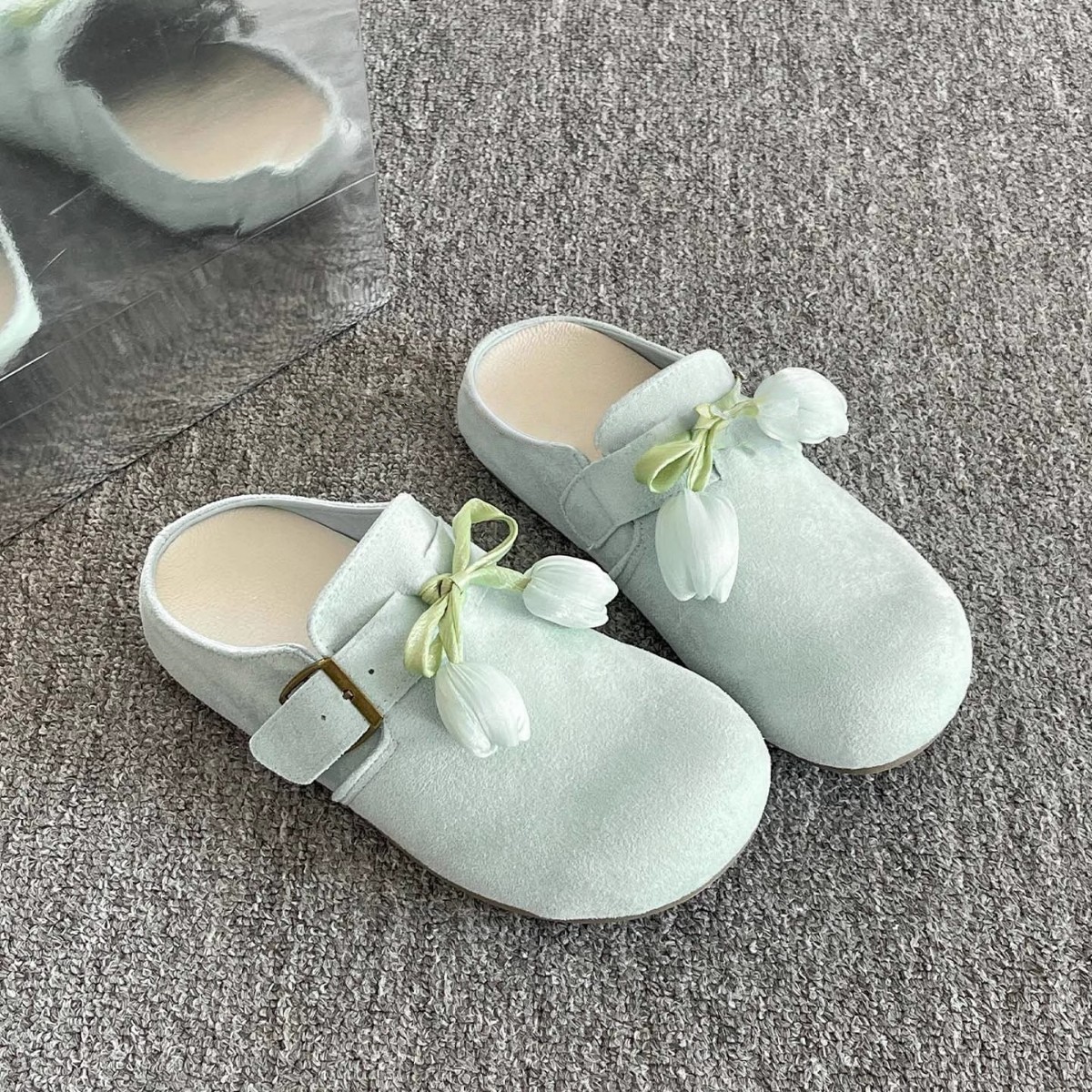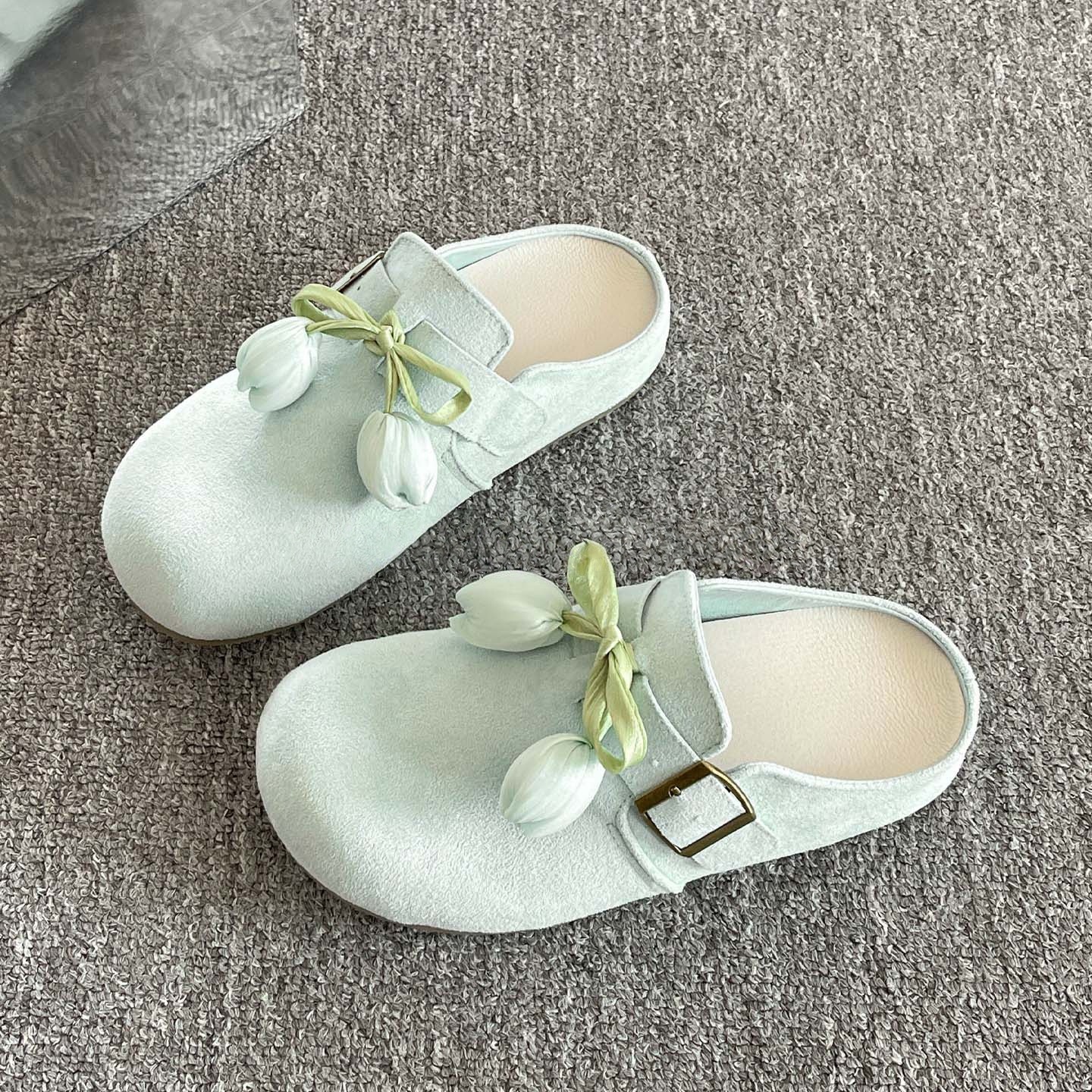 复古花朵配裙子包头半拖鞋女外穿2025夏季新款百搭一脚蹬勃肯鞋