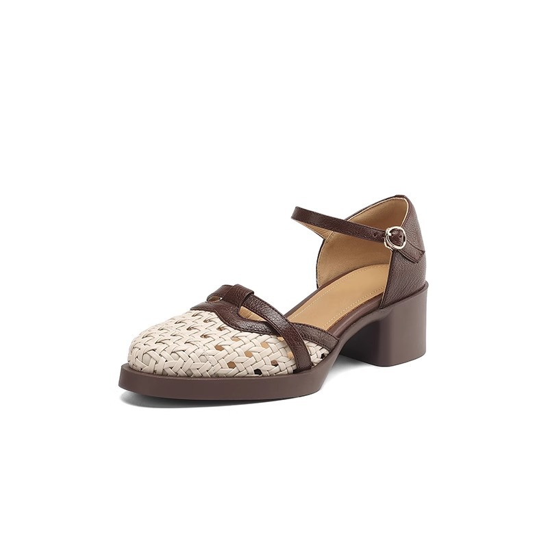 包头厚底凉鞋女真皮镂空猪笼鞋2025新款夏季网眼洞洞蝴蝶结罗马鞋