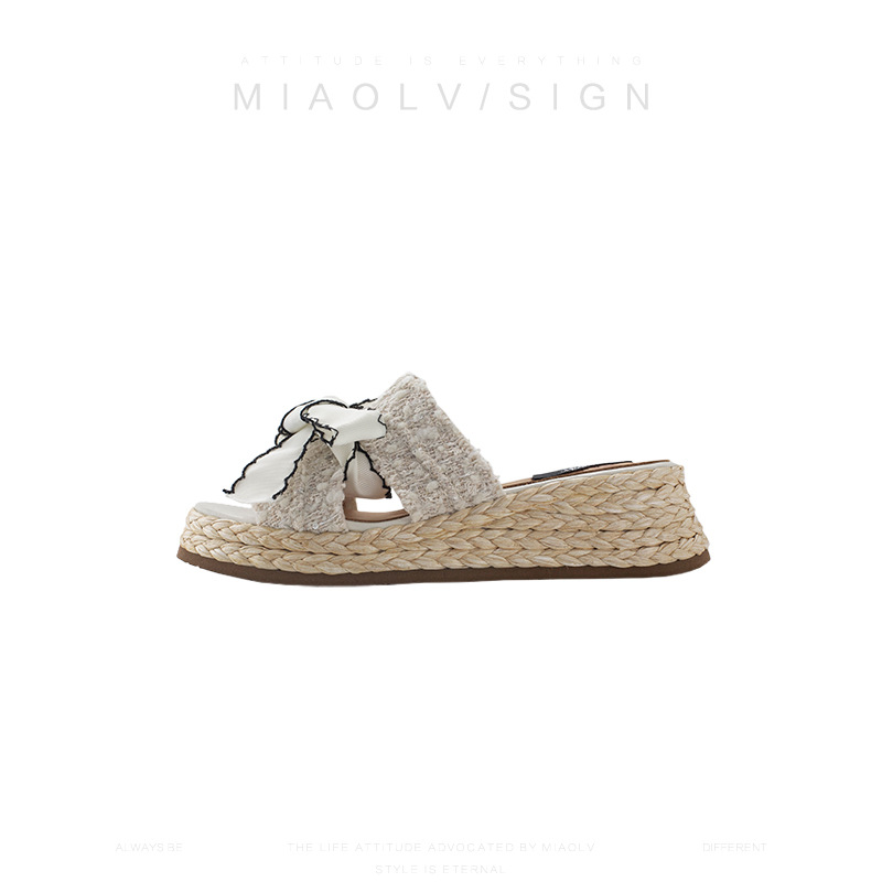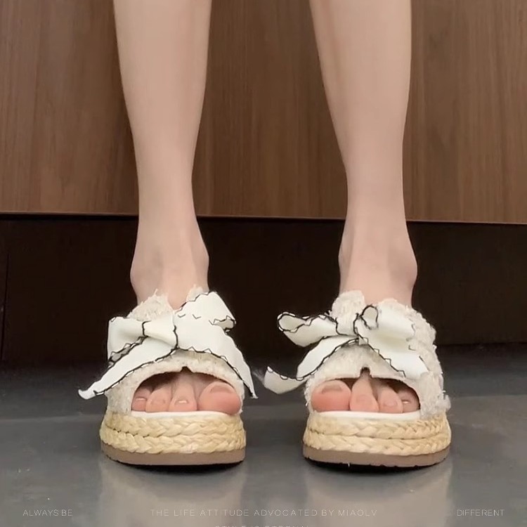 复古厚底一字拖鞋女夏外穿2025新款设计感跛跟草编休闲凉拖鞋女