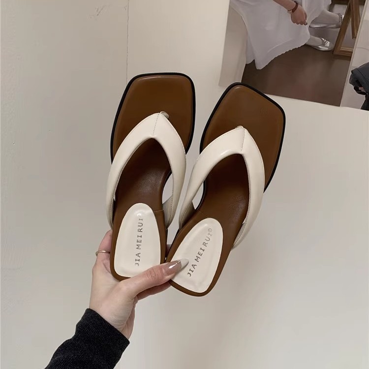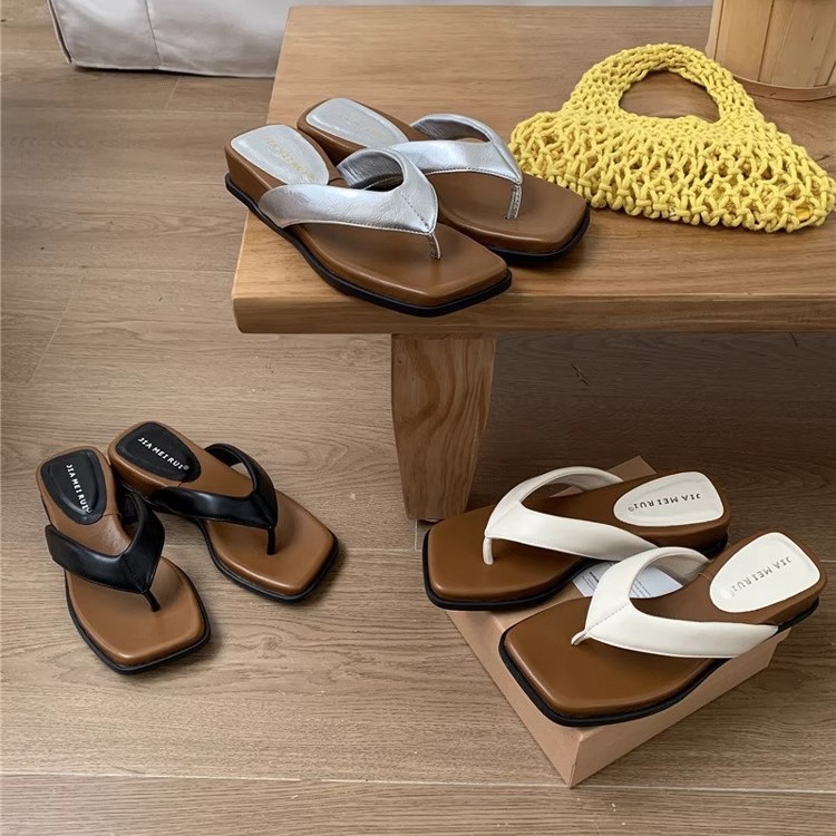 拖鞋女夏外穿2025新款夏季配裙子凉拖鞋厚底坡跟人字拖法式小凉拖