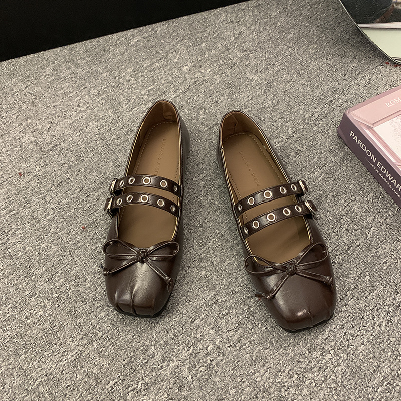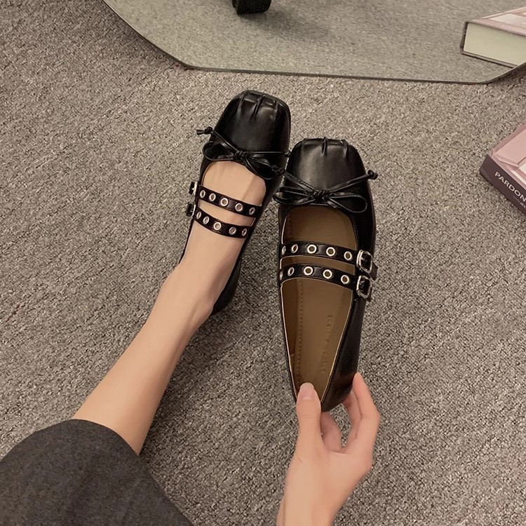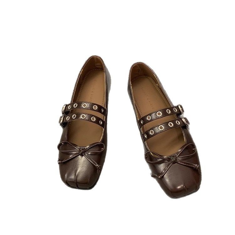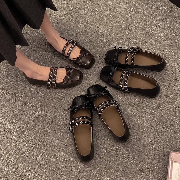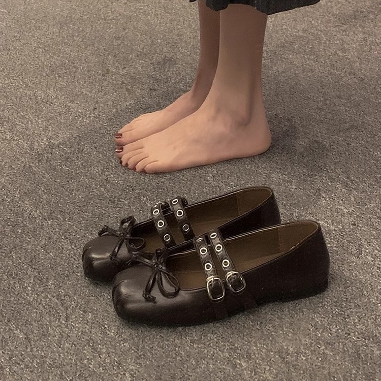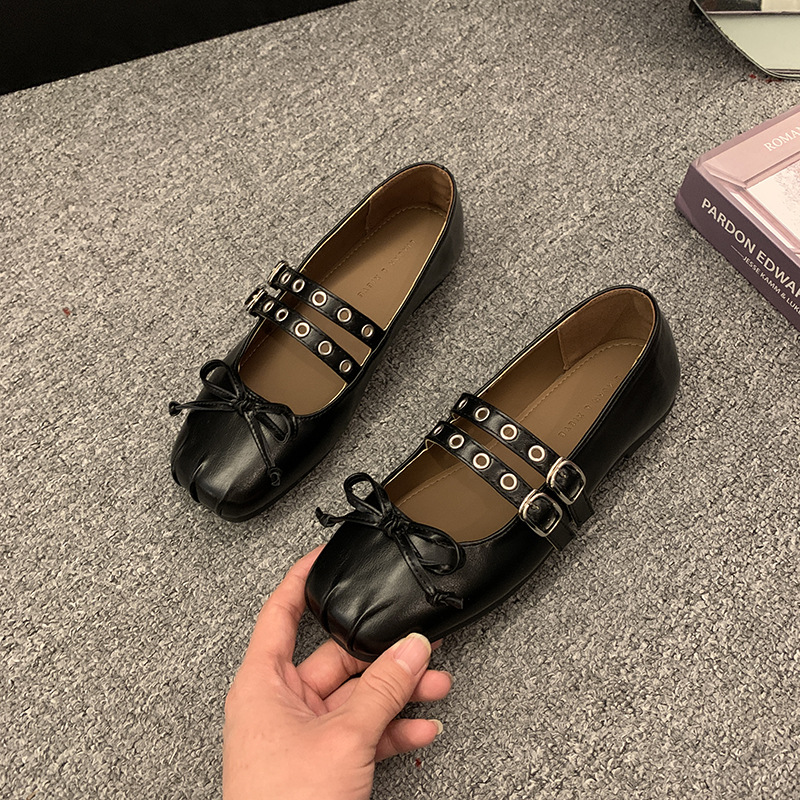 复古玛丽珍鞋女2025春夏新款芭蕾舞鞋百搭圆头蝴蝶结浅口平底单鞋