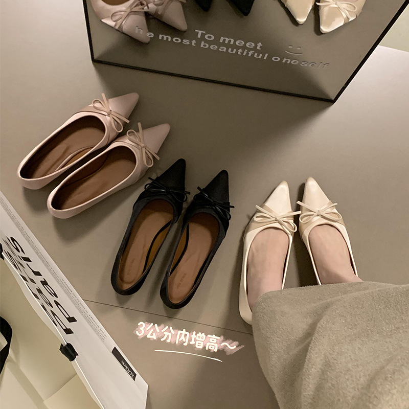 高级感内增高缎面尖头单鞋女新款气质低跟优雅瓢鞋