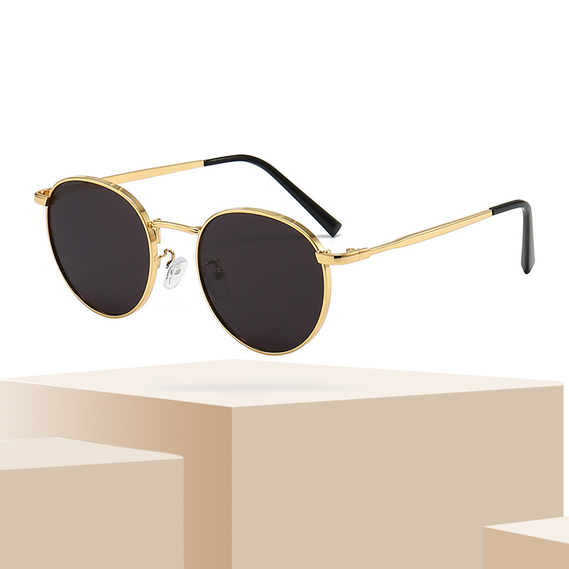 网红同款太阳眼镜女夏新款韩版圆复古茶色小圆框墨镜防晒紫外线潮