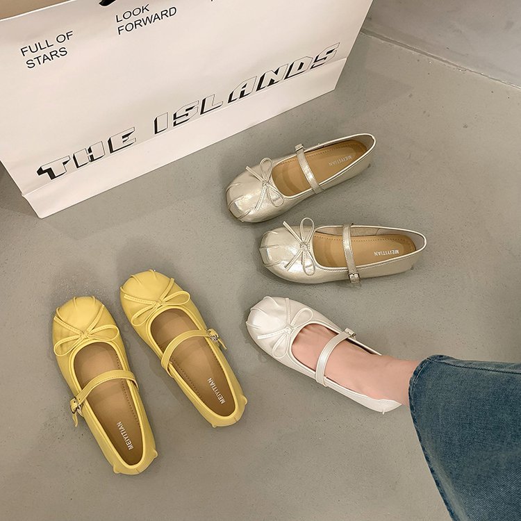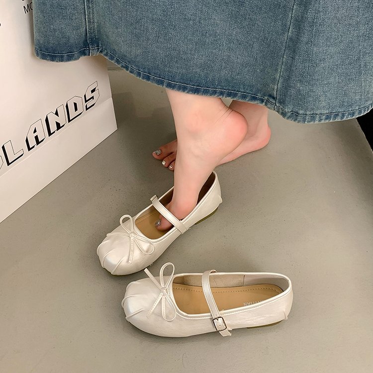平底玛丽珍鞋女夏季2025新款软底复古浅口豆豆鞋配裙法式芭蕾单鞋