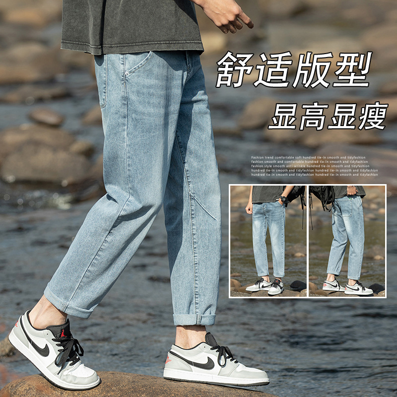 牛仔裤男士男装宽松直筒潮牌春秋休闲夏季薄款九分长裤子新款