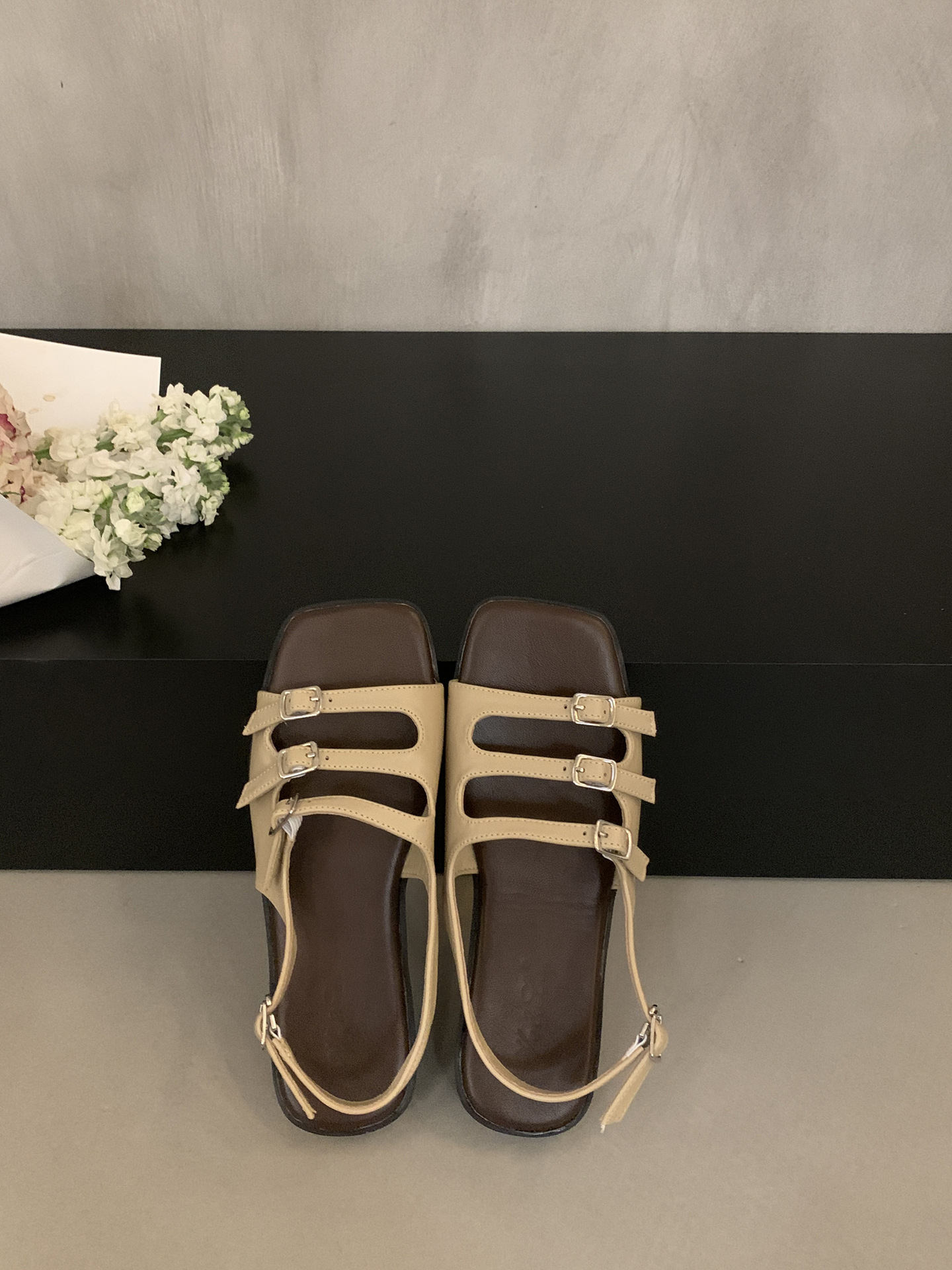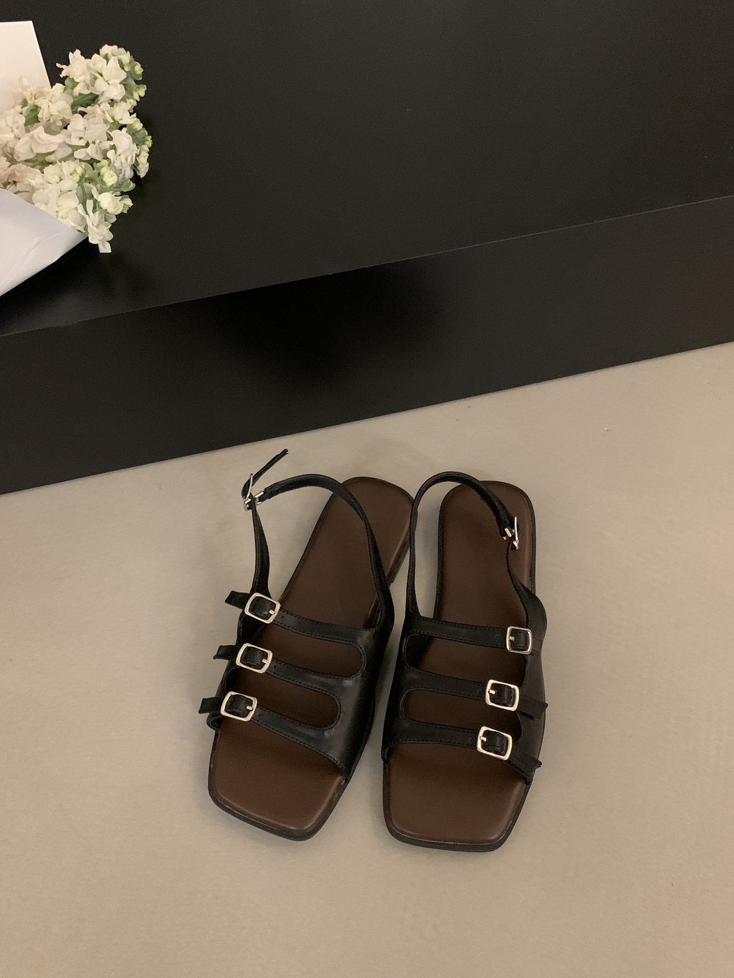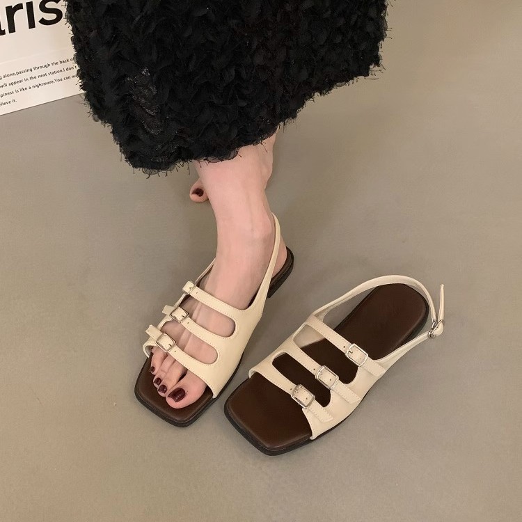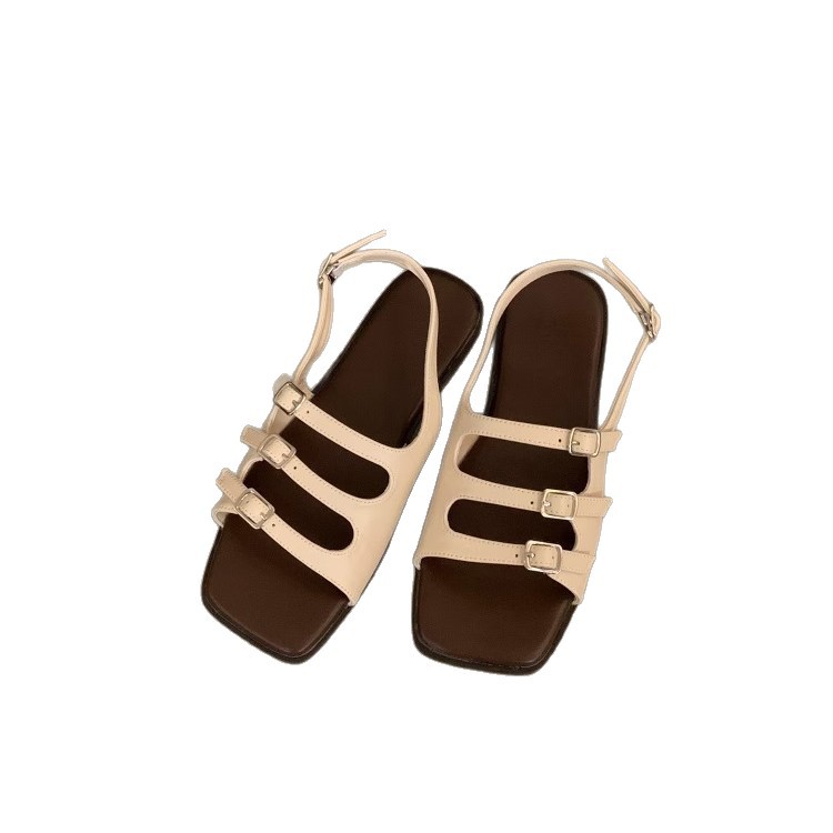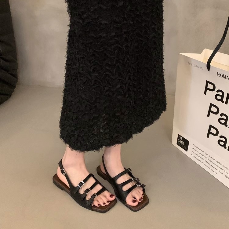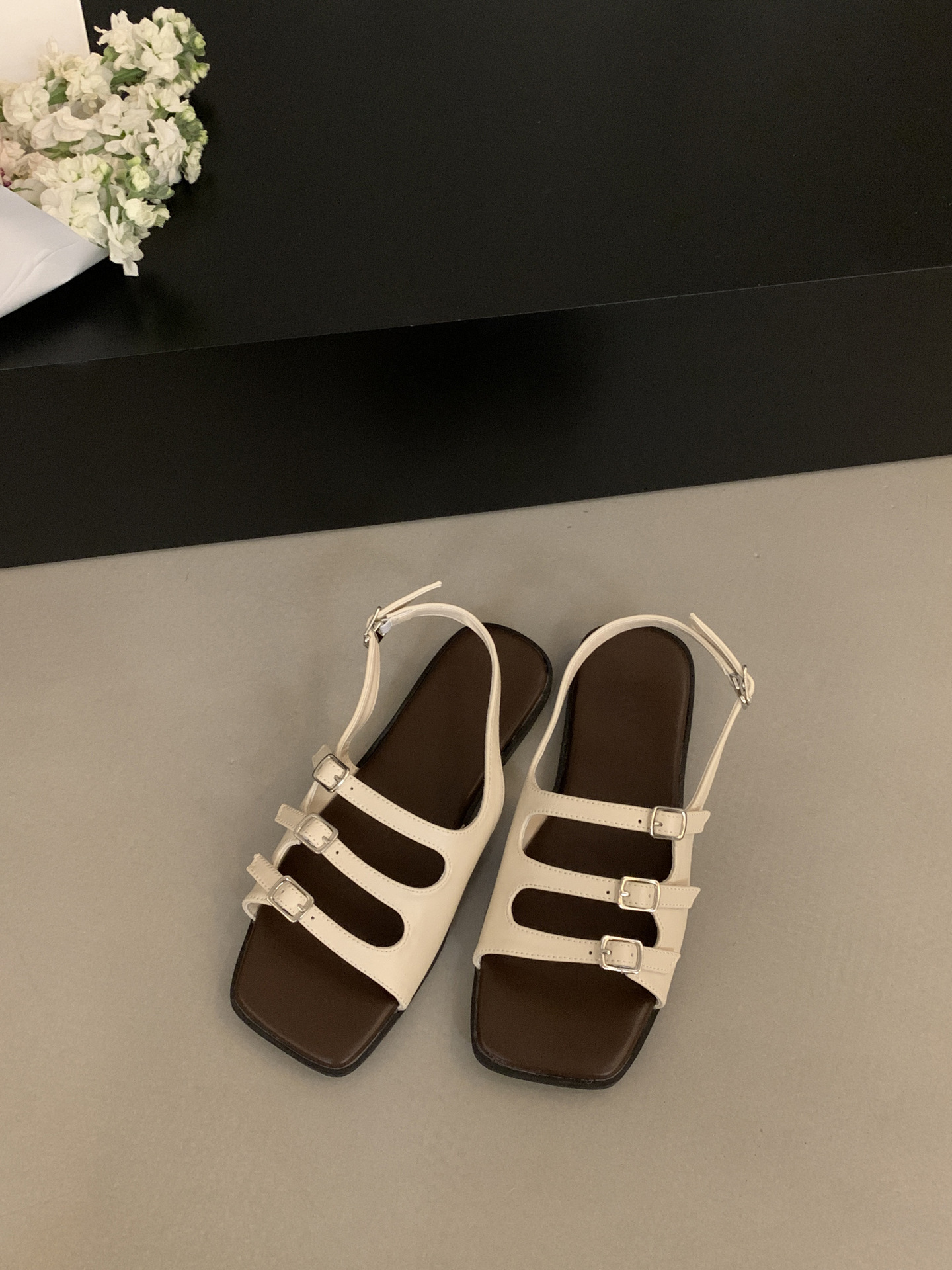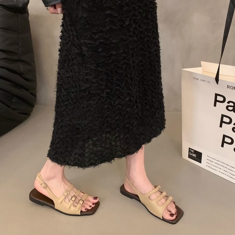 平底软底一字带皮带扣罗马凉鞋女夏外穿2025新款法式高级露趾凉拖