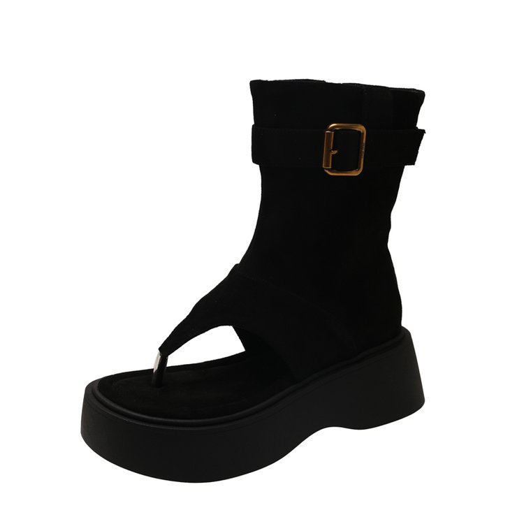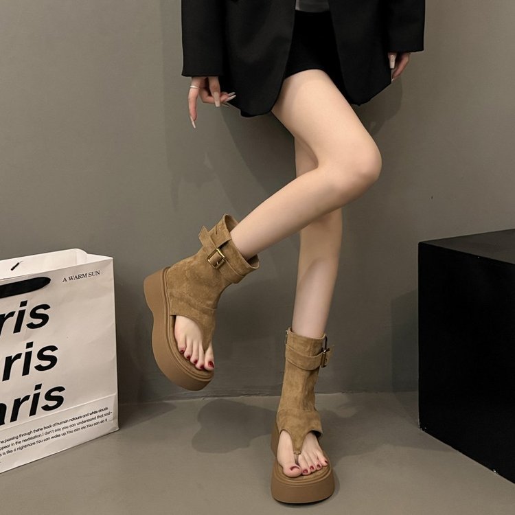 6cm厚底夹趾凉靴女2025夏季新款百搭增高裤管短靴美拉德罗马凉鞋