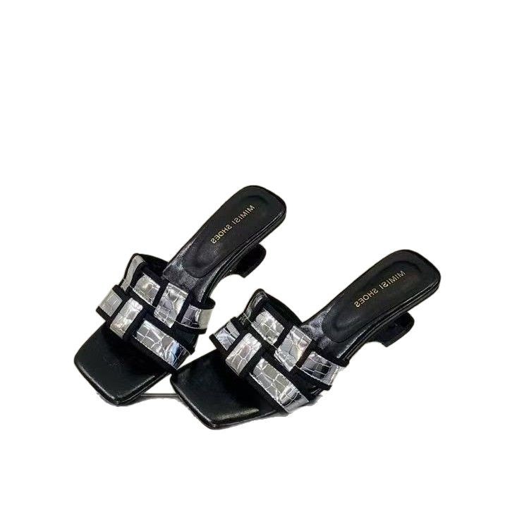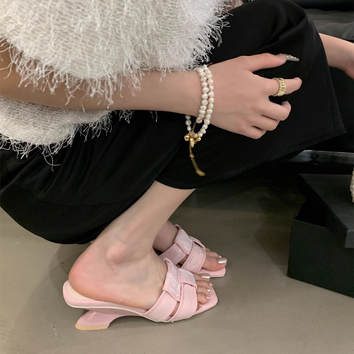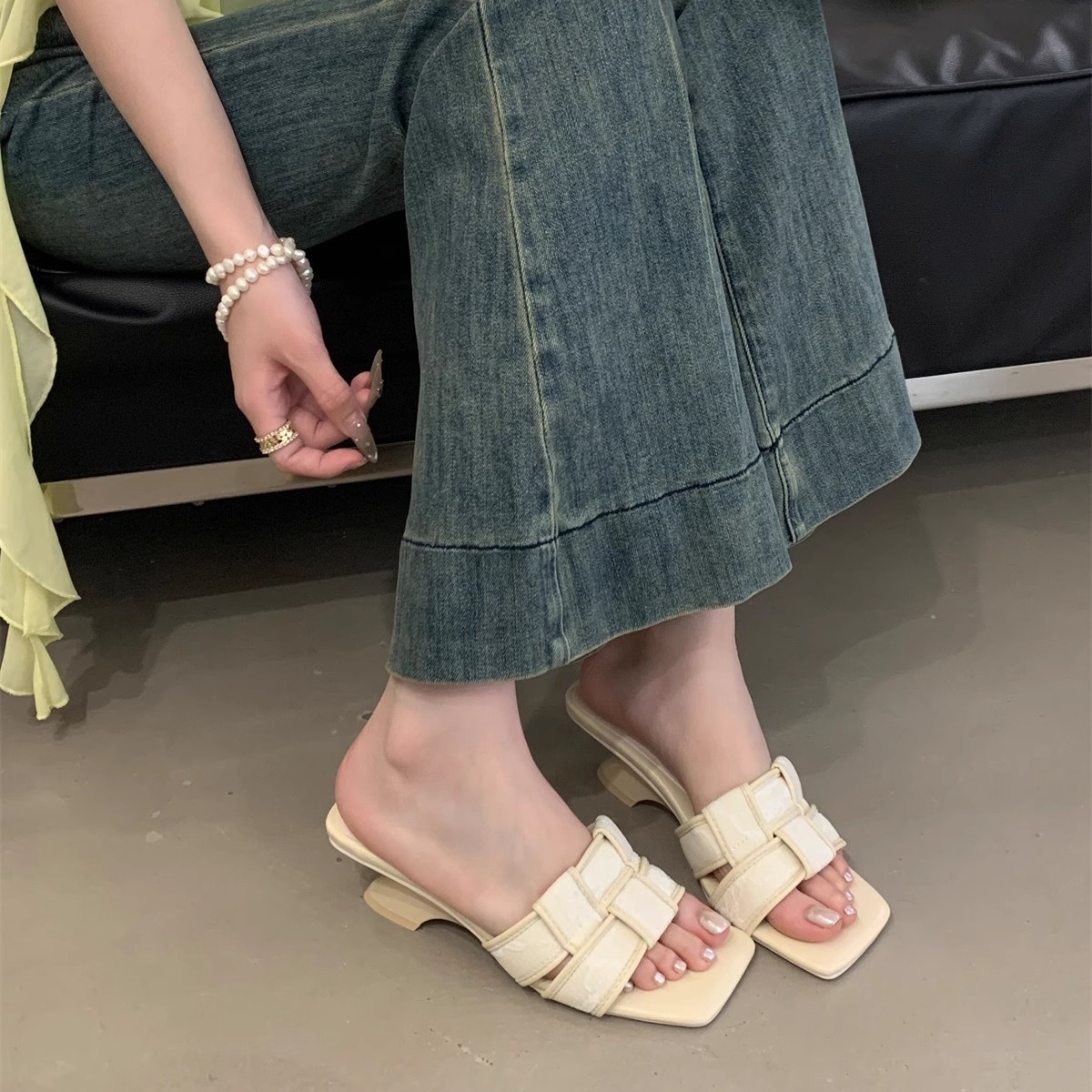 法式高级感编织一字带露趾拖鞋女夏外穿气质绝美高跟鞋小香风凉拖