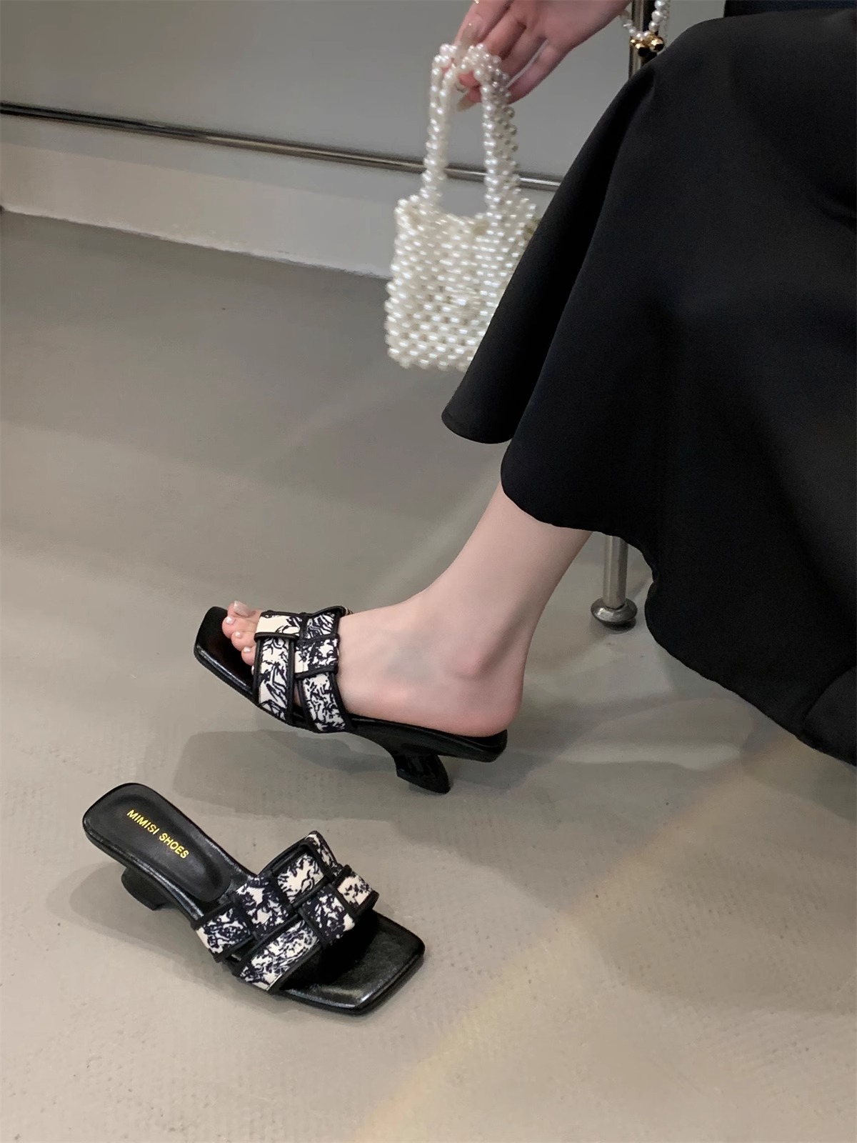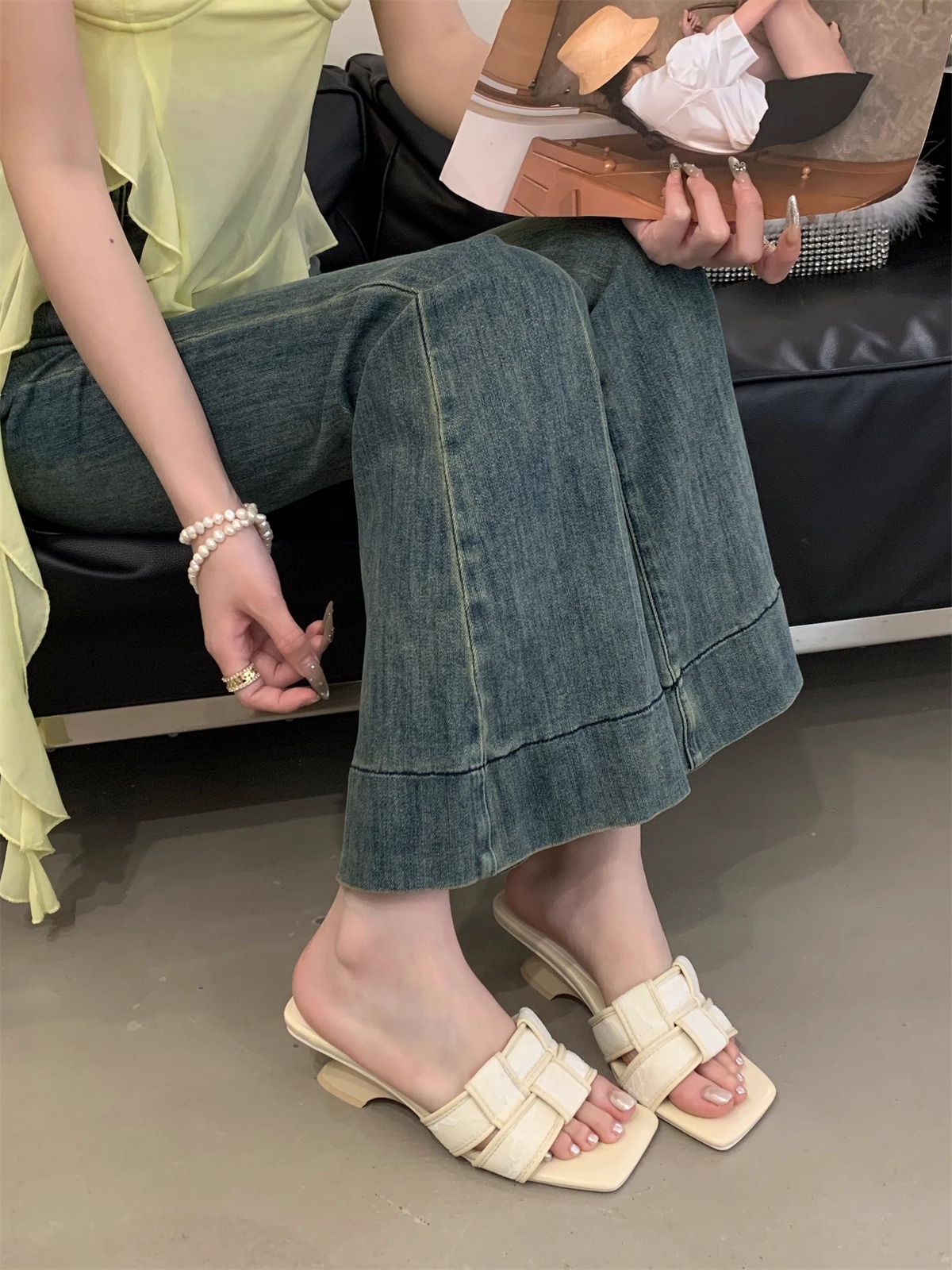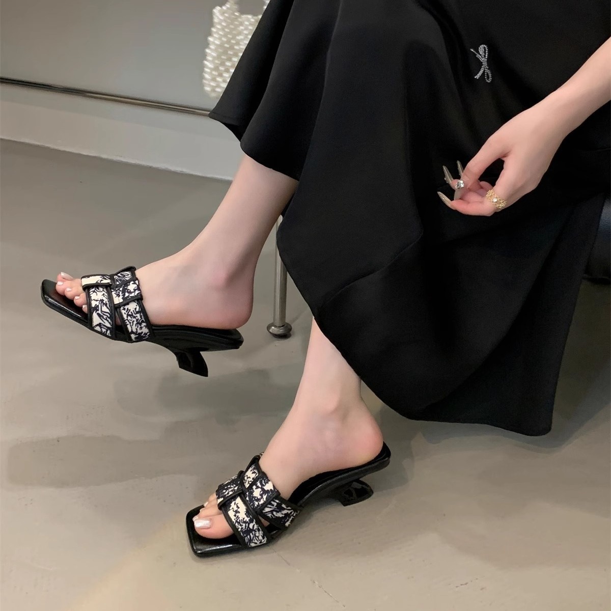 法式高级感编织一字带露趾拖鞋女夏外穿气质绝美高跟鞋小香风凉拖