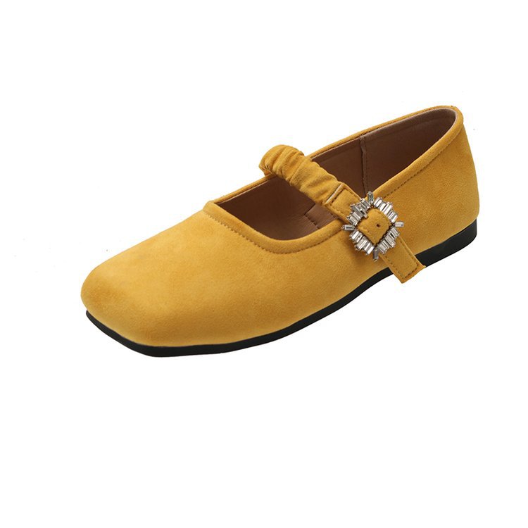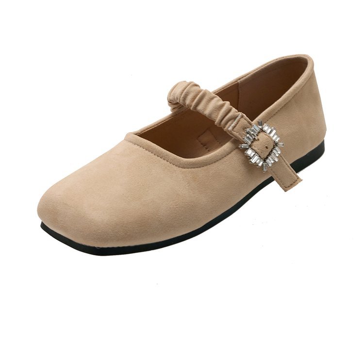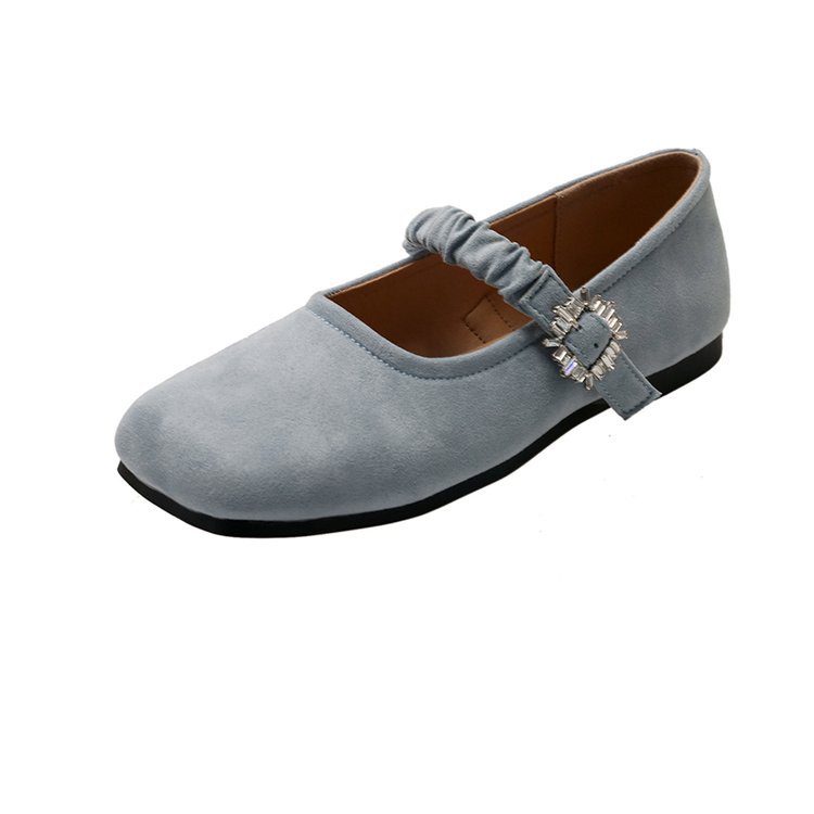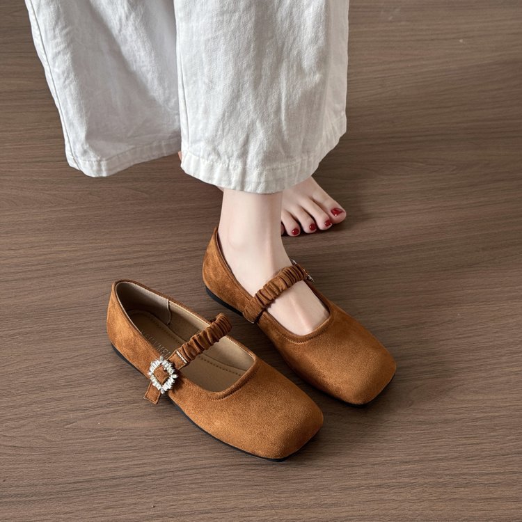 法式水钻方头玛丽珍女鞋2025新款春夏季软底豆豆鞋配裙子浅口单鞋