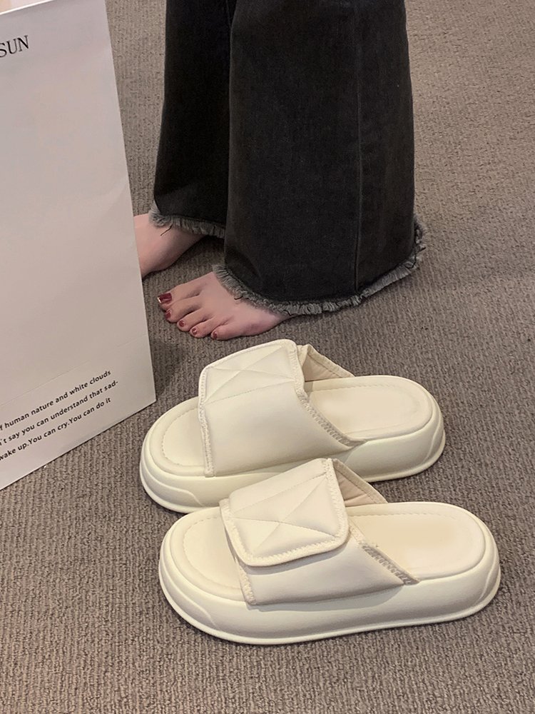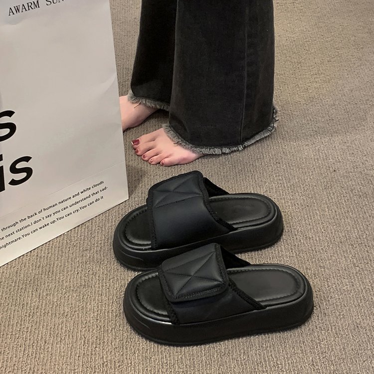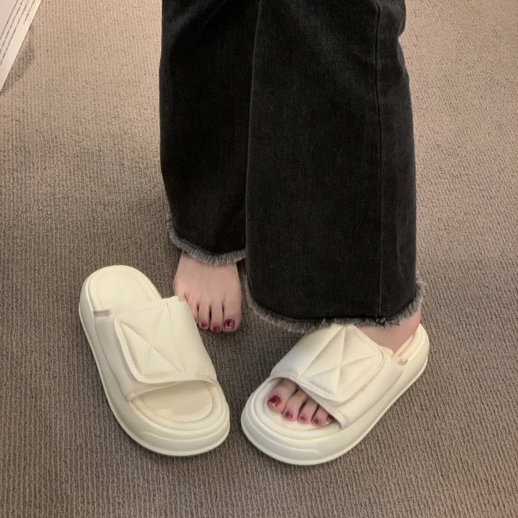 厚底松糕凉拖鞋女夏季外穿2025新款休闲沙滩凉鞋时尚魔术贴一字拖