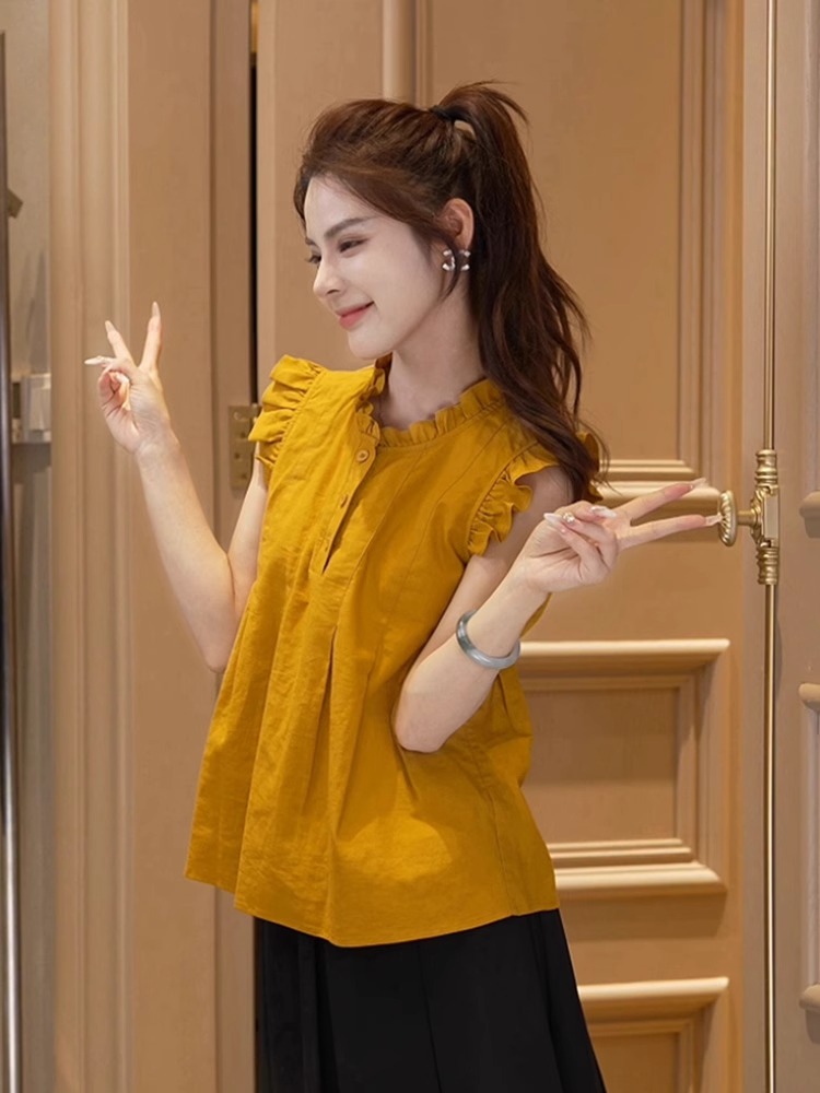 黄色飞飞袖衬衫女夏季款小香风时尚百搭显瘦别致独特法式小衫上衣