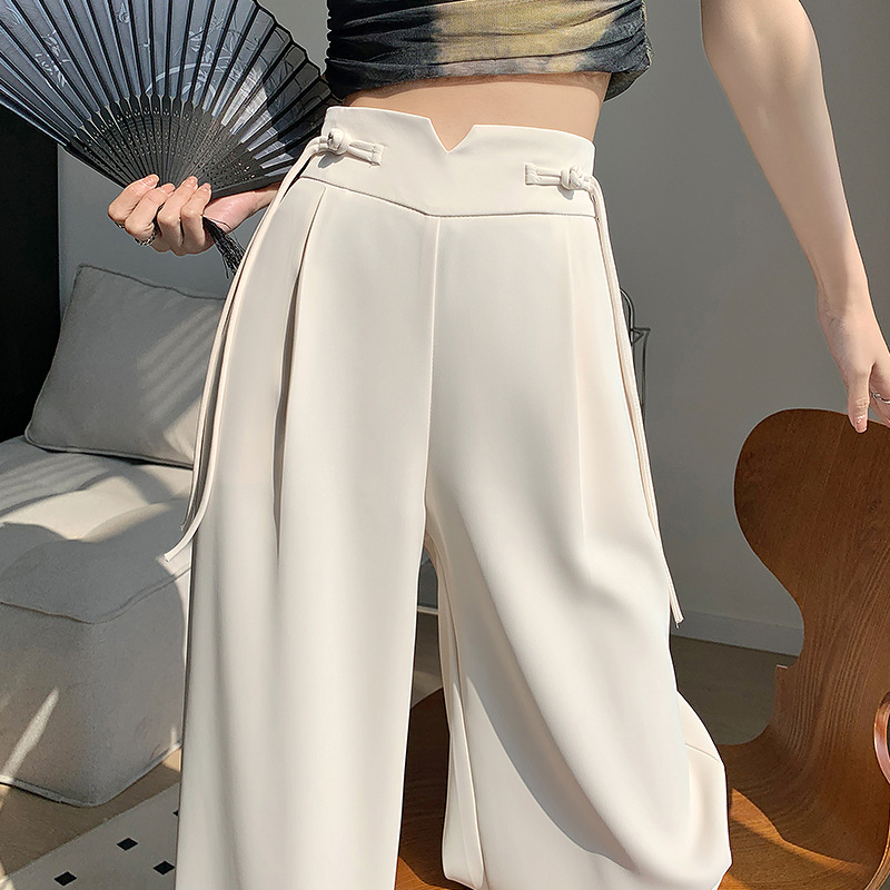 新中式国风西装阔腿裤女春夏新款盘扣显瘦直筒裤休闲拖地裤女