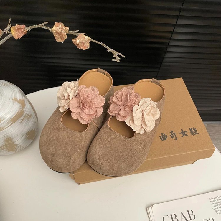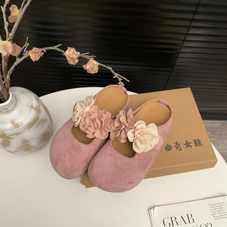 增高厚底勃肯鞋包头半拖鞋女夏外穿仙女风花朵丑萌单鞋一脚蹬凉拖