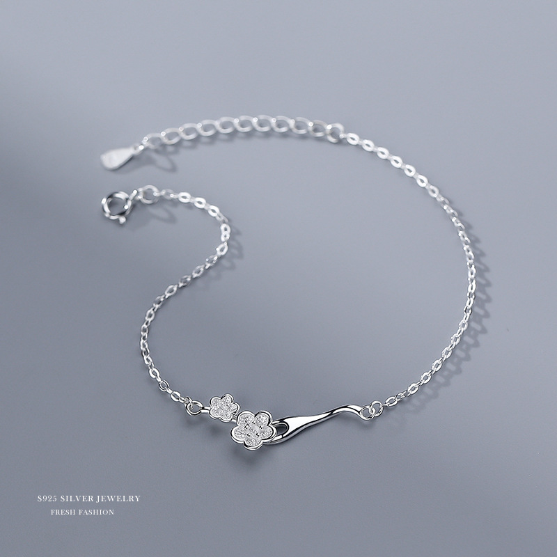 s925银女手链桃花枝可爱文艺清新花朵樱花手环中国风手饰潮