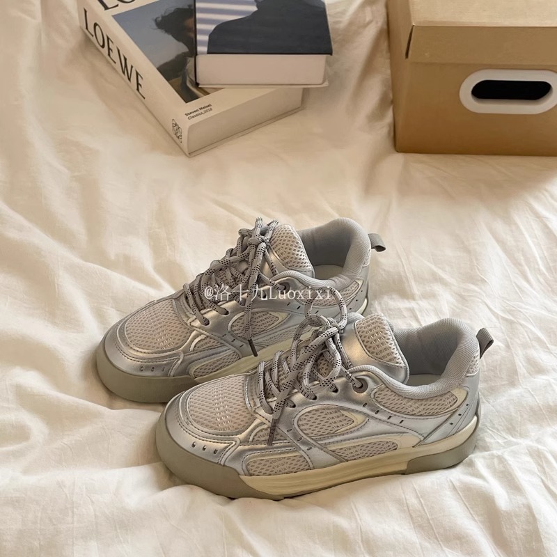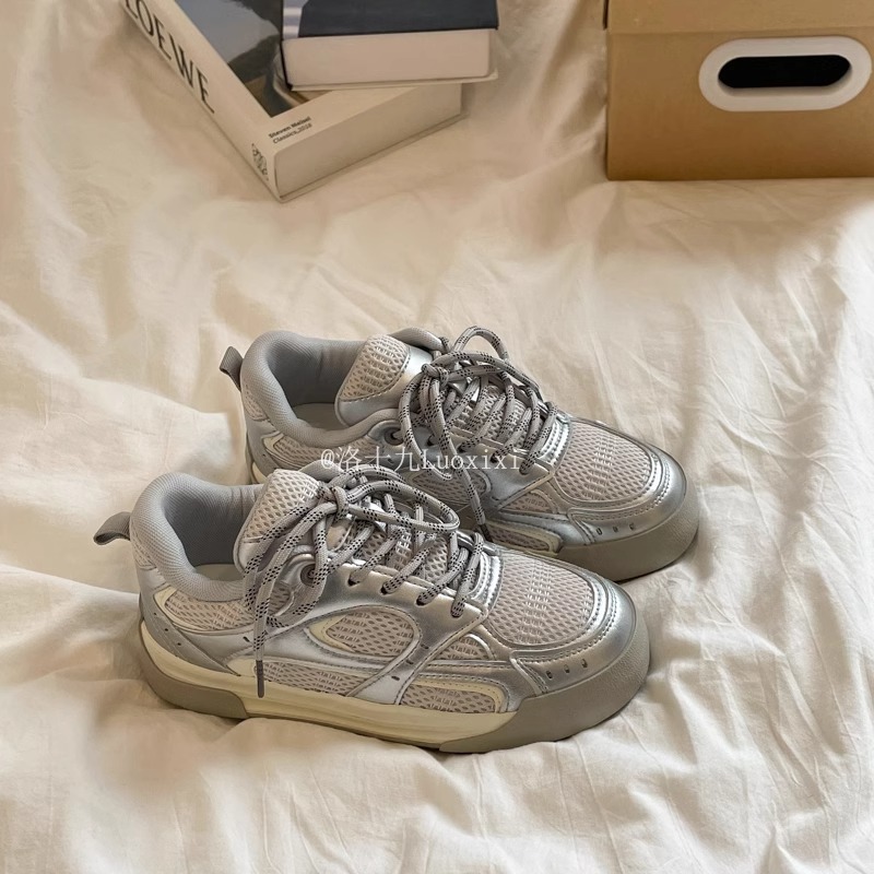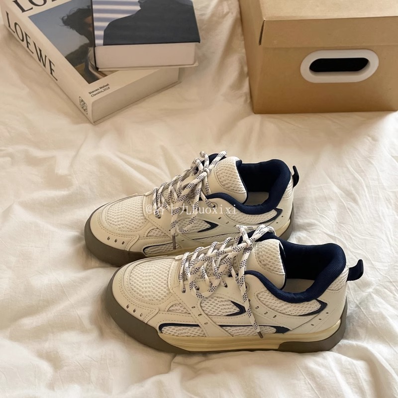 小白鞋女2025年新款网面透气小众设计感德训鞋百搭学生运动休闲鞋