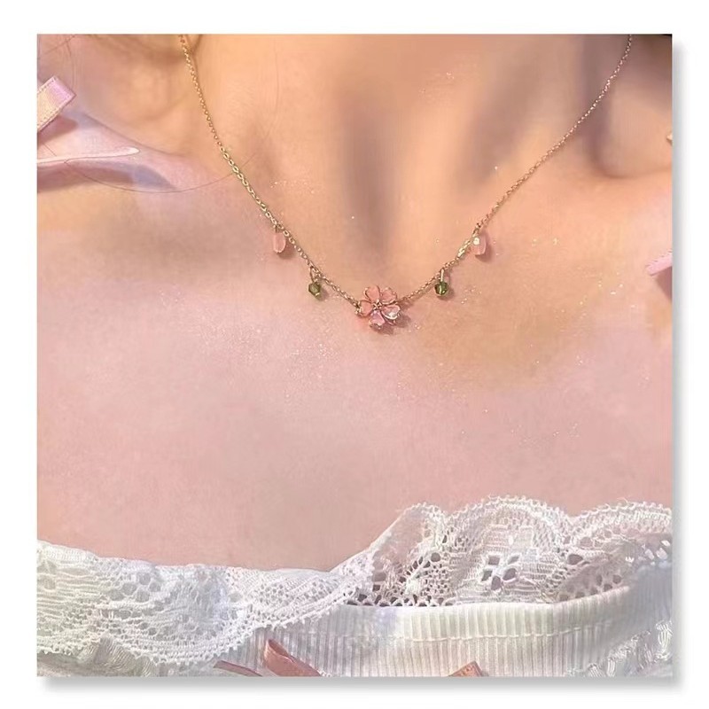 新款樱花吊坠轻奢小众粉色项链女生夏锁骨颈链时尚网红饰品
