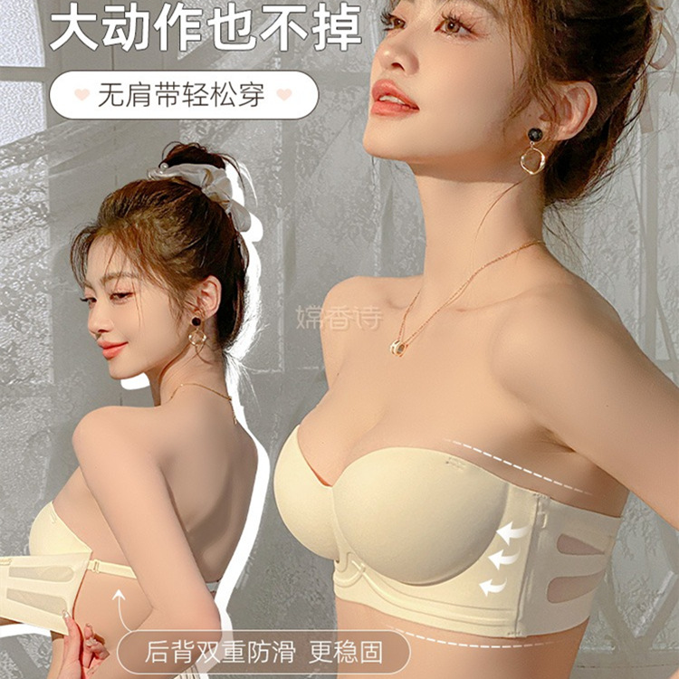 无痕无肩带透气上托内衣女小胸聚拢显大收副乳防下垂无钢圈文胸罩