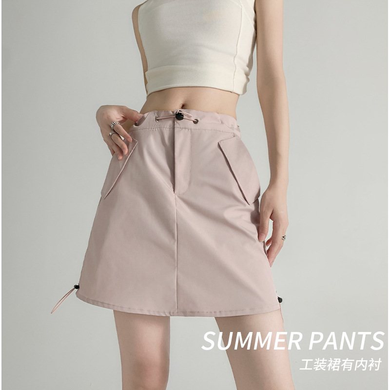 粉色工作短裙女夏季薄款24新款美式速干a字包臀裙辣妹显瘦半身裙
