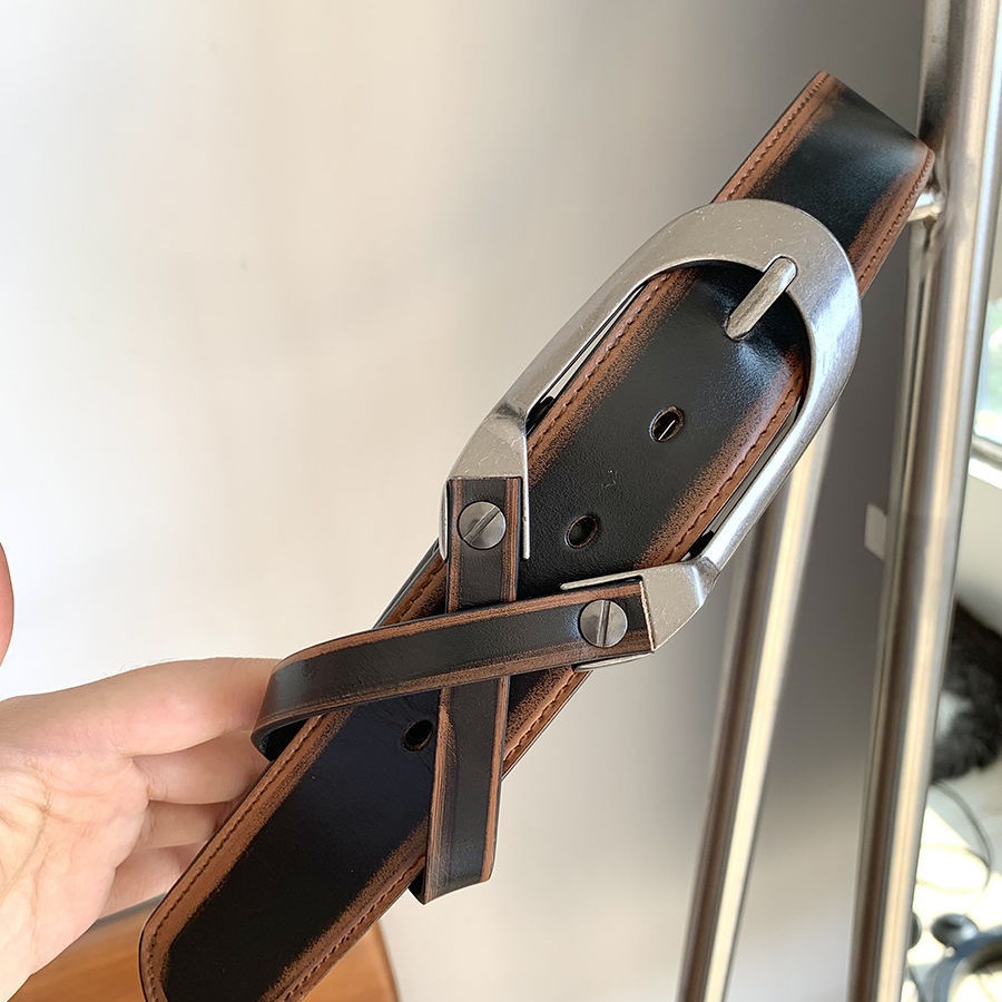 网红同款欧美ins风棕色PU腰带重磅异形交叉皮带中性风配饰时髦