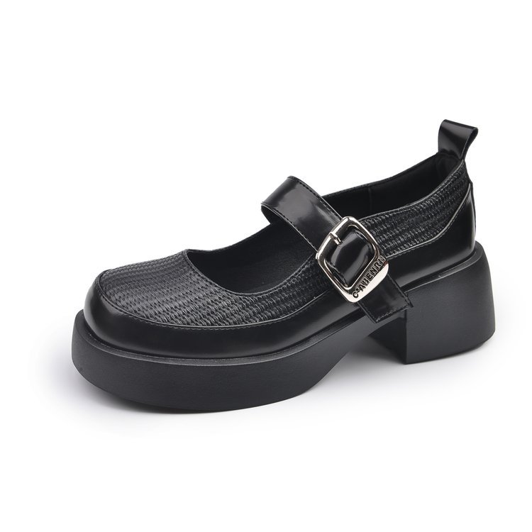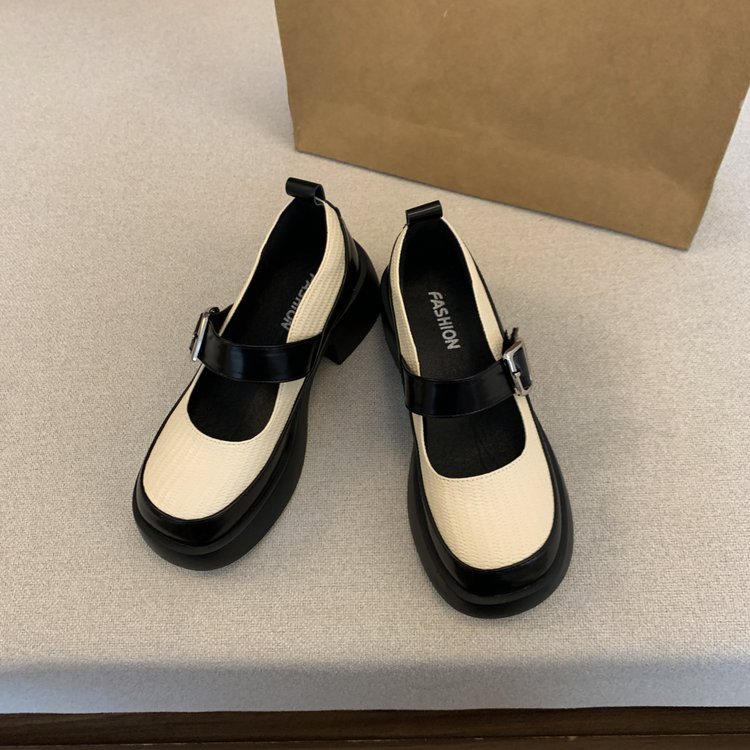 玛丽珍鞋英伦风黑色小皮鞋粗跟浅口一字带单鞋圆头厚底乐福鞋女鞋