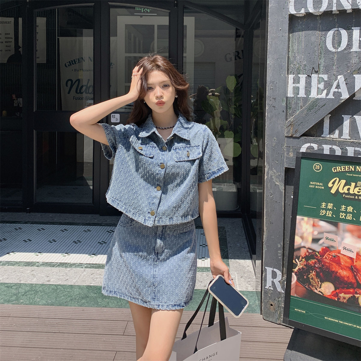 又a又飒牛仔短裙套装女夏季新款小个子时尚减龄半身裙两件套