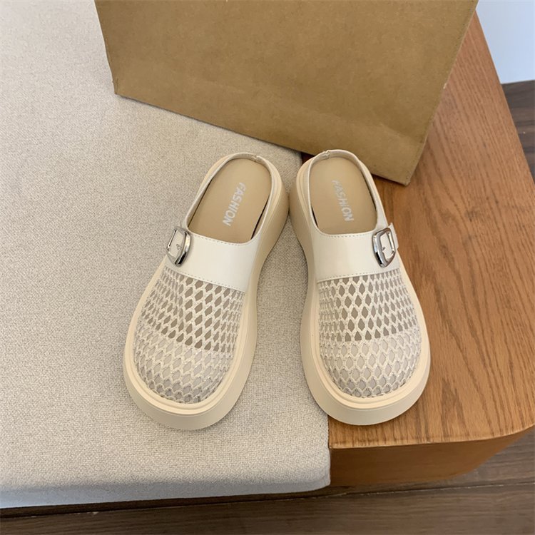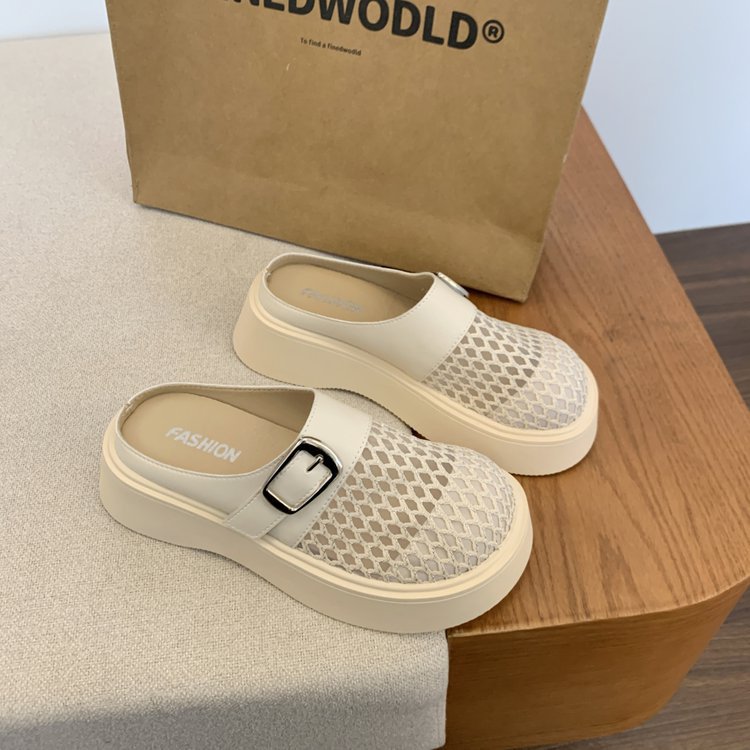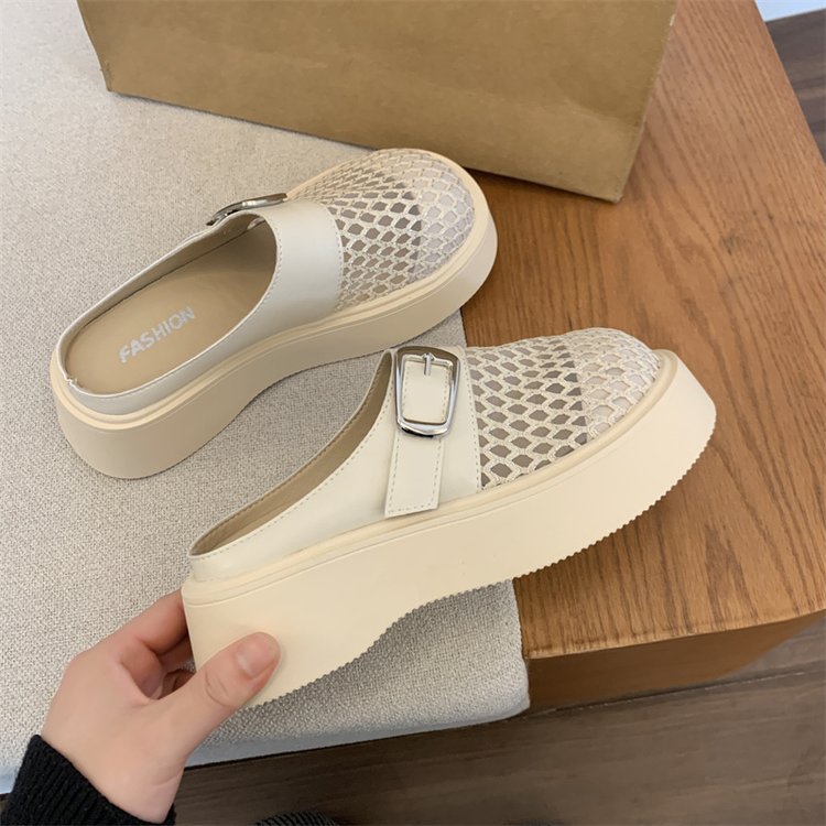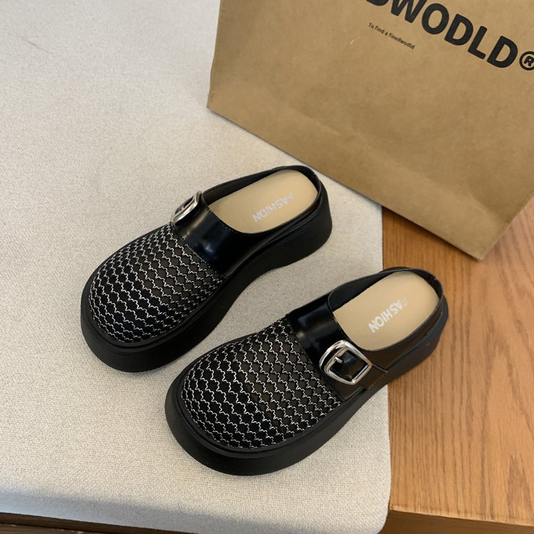 厚底包头半拖鞋女外穿高级感2025春夏新款复古穆勒鞋一脚蹬懒人鞋