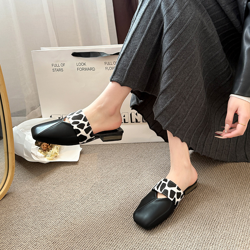 包头半拖鞋女外穿法式平底温柔晚风凉鞋夏季2025年新款凉拖穆勒鞋