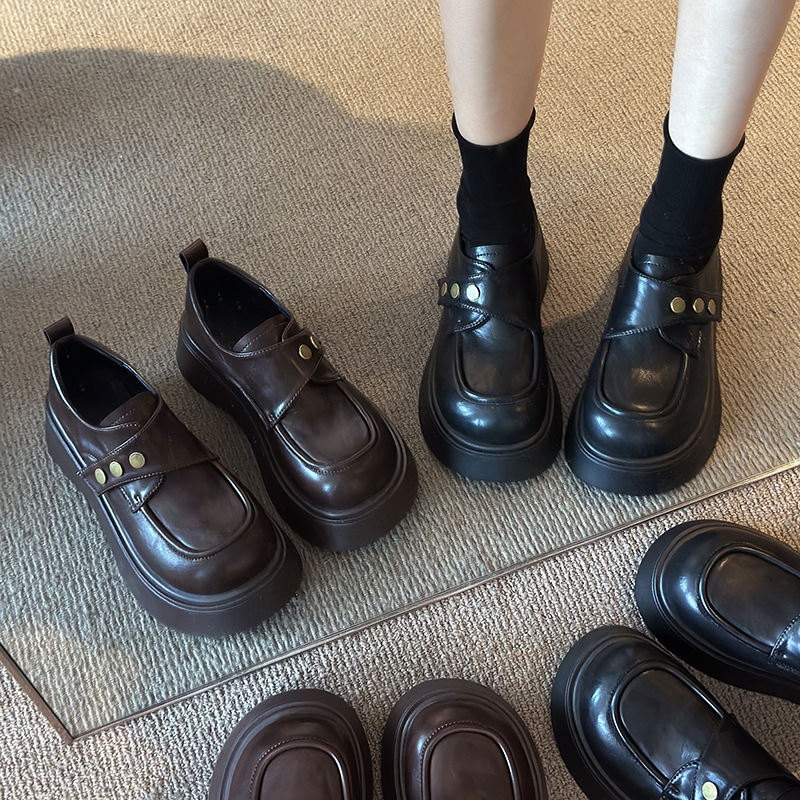英伦风黑色厚底增高小皮鞋气质单鞋2025春季新款玛丽珍百搭乐福鞋