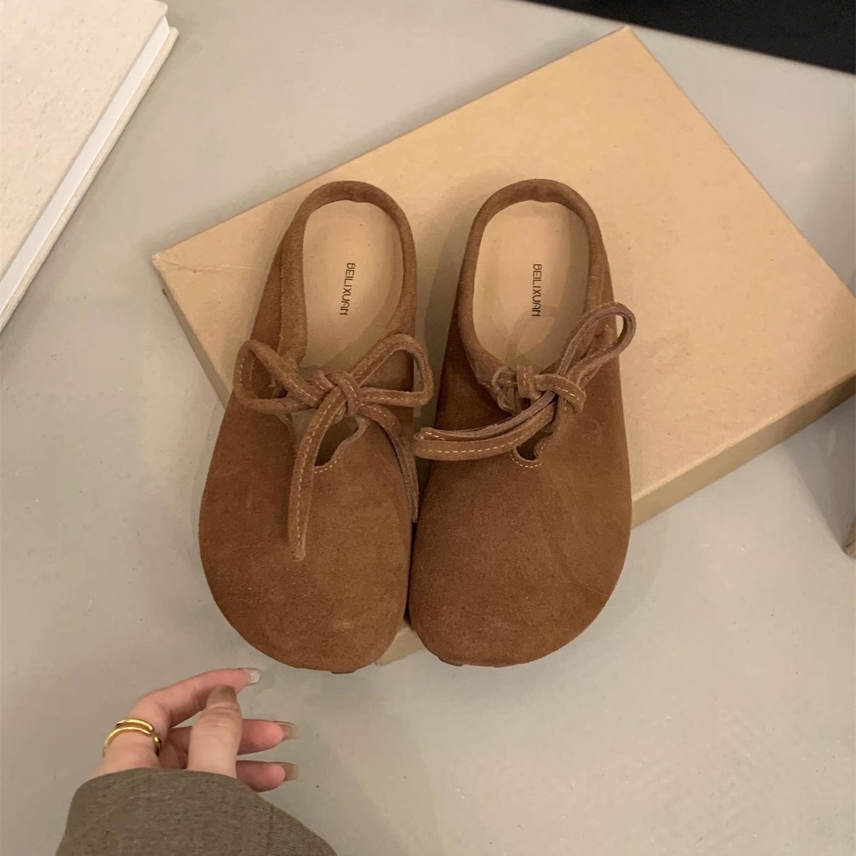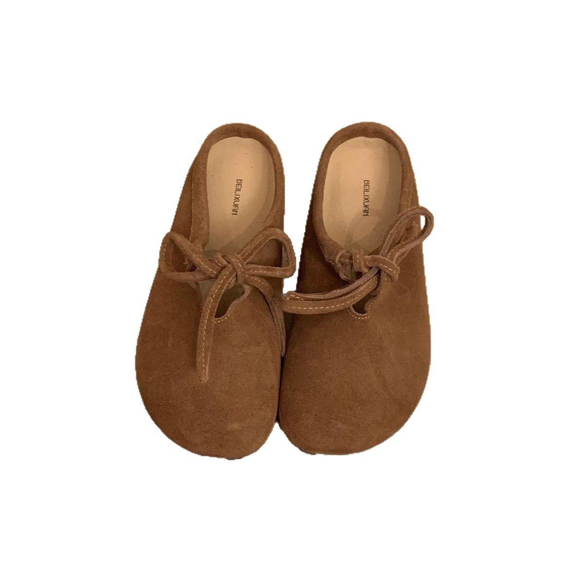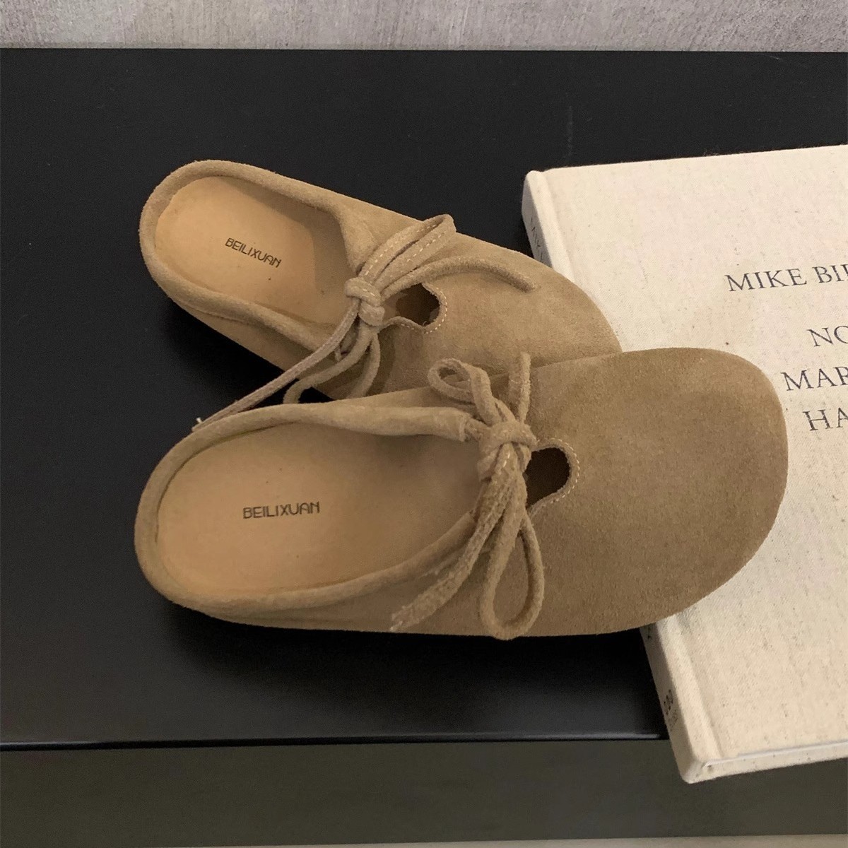 博肯包头半拖鞋女外穿平底半托2025春季新款复古防滑丑萌凉拖鞋