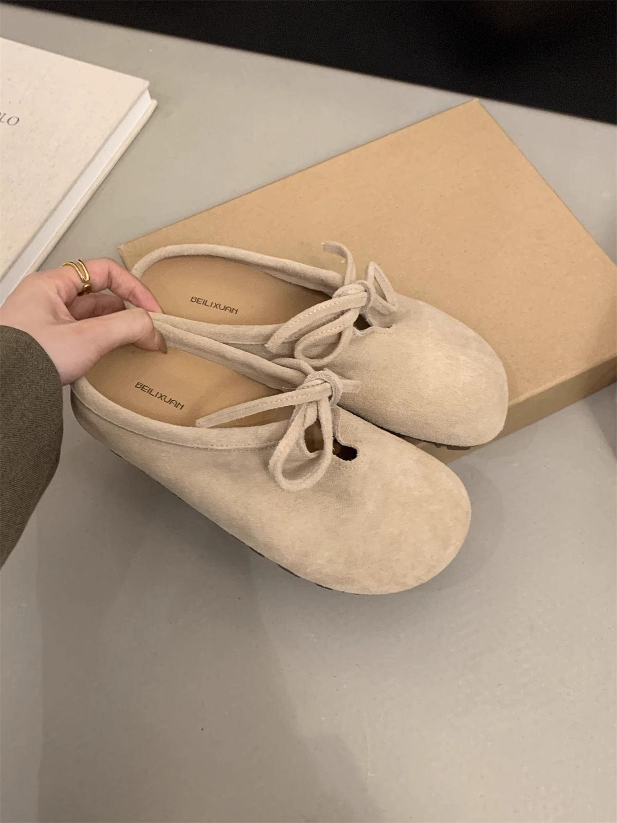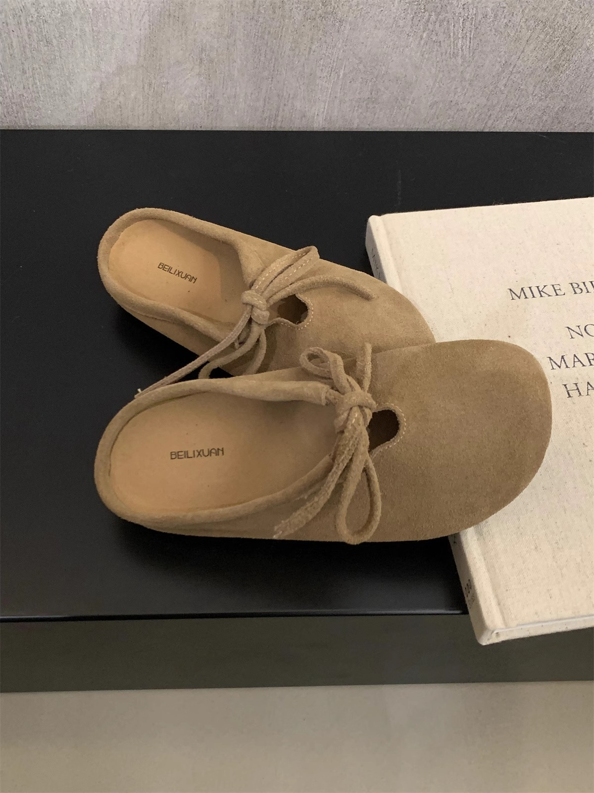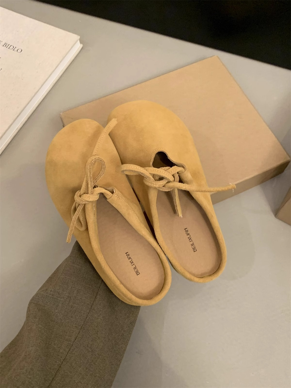 博肯包头半拖鞋女外穿平底半托2025春季新款复古防滑丑萌凉拖鞋